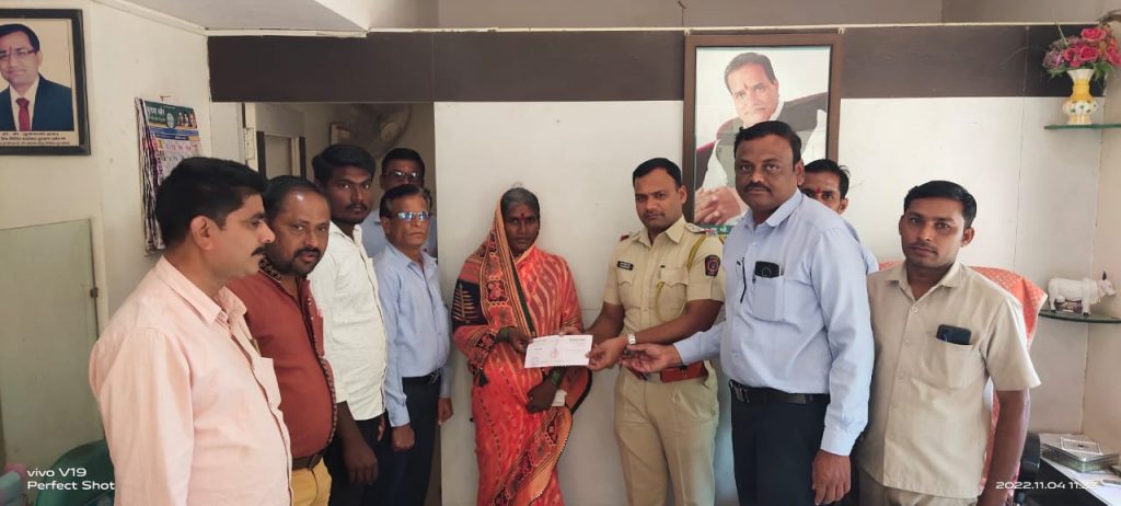 बुलढाणा अर्बन कॉपरेटिव बँक शाखा ढाणकी येथील शाखेमध्ये अमोल दिलीप माने राहणार चातारी यांनी चार लाख 81 हजार डिपॉझिट केले होते मात्र त्यांचा अपघातात मृत्यू झाल्याने त्यांचे कुटुंब उघड्यावर आले . या घटनेची माहिती मिळताच ढाणकी शाखेचे व्यवस्थापक सचिन पांडे यांनी मयत सभासदाच्या घरी जाऊन विभागीय व्यवस्थापक सौ मुग्धा देशपांडे यांच्या मार्गदर्शनानुसार कुटुंबाचे सांत्वन केले आणि मयत अमोल माने यांच्या कुटुंबीयांकडून आवश्यक ती कागदपत्रे घेऊन विमा प्रस्ताव मंजुरीसाठी मुख्यालयाकडे सादर केला. सदर प्रस्ताव मंजूर होऊन मयताचे वारस रेणुकाबाई दिलीप माने यांना चार लाख 81 हजार रुपयांचा चेक आज ढाणकी येथील शाखेत देण्यात आला. यावेळी बिटरगाव पोलीस स्टेशनचे ठाणेदार प्रताप बोस, शाखा व्यवस्थापक सचिन पांडे, नंदकिशोर चौधरी, प्रमोद शिनकरे, संध्या घुगरे, पुरुषोत्तम बंडीवार, दिगंबर माने, विनोद चौधरी, कंचन ठाकूर, ठेवीदार व सभासद उपस्थित होते.
