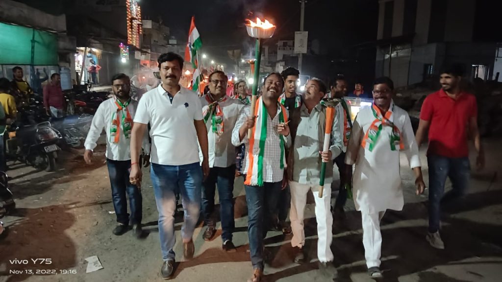 संपूर्ण भारत भर भारत जोडो, संविधान बचाओ, साठी भारतीय राष्ट्रीय कॉंग्रेस पक्षाच्या वतीने कॉंग्रेस पक्षाचे नेते तथा खासदार राहुल गांधी यांनी कन्याकुमारी ते काश्मीर अशी ‘भारत जोडो’ पद यात्रा सुरू केली आहे. ती यात्रा महाराष्ट्रात आली आहे.त्या निमित्ताने वणी शहरात कॉंग्रेस पक्षाच्या वतीने मशाल रॅली काढण्यात आली.हि मशाल रॅली शासकीय मैदान येथून सुरू होऊन शहरातील प्रमुख मार्गावरून फिरून शासकीय मैदान येथे समाप्त करण्यात आली.