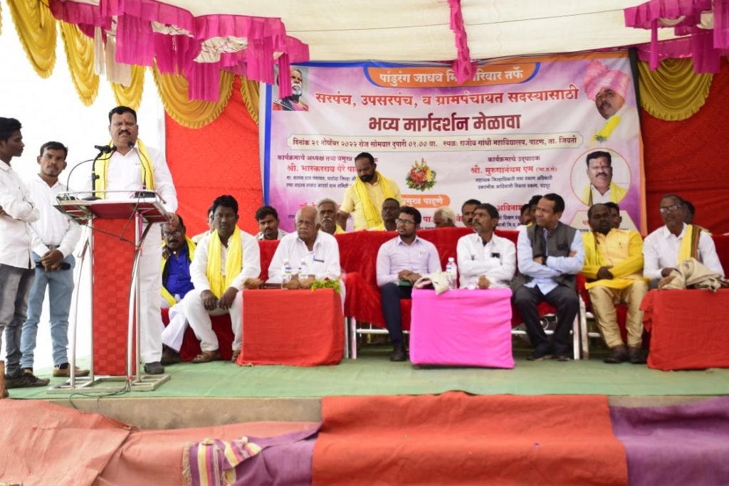 जिवती :- तालुक्यातील पाटण येथे राजीव गांधी महाविद्यालय पाटण येथे सांसद आदर्श ग्राम समिती महाराष्ट्र राज्य मुंबईचे सदस्य तथा आदर्श ग्राम पाटोदाचे सरपंच भास्कररावजी पेरे पाटील यांचा मार्गदर्शन मेळावा आयोजित करण्यात आला होता.