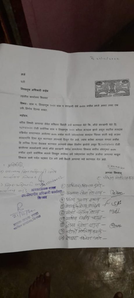 पुन्हा निवडणूक बैलेट पेपर ने घेण्याची गावकर्यांनी केली मागणी
