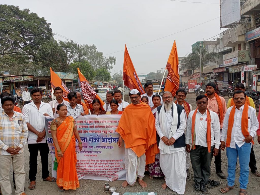 वाशिम – शहरातील पुसद नाका चौकात तसेच उड्डाणपुलानजीक निर्माण झालेल्या खड्यांच्या दुुरुस्तीसाठी महाराष्ट्र नवनिर्माण सेनेच्या वतीने जिल्हाध्यक्ष मनिष डांगे यांच्या नेतृत्वात शुक्रवार, ६ जानेवारी रोजी खड्डयाचे श्राध्द घालुन रास्ता रोको आंदोलन करण्यात आले. आंदोलनानंतर एमएसआरडीसीच्या उपअभियंत्यांना आंदोलनस्थळी निवेदन देण्यात आले.