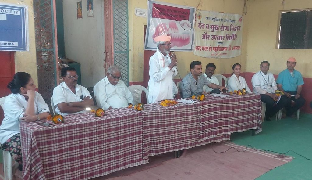 राळेगाव तालुक्या अंर्तगत येत असलेल्या झाडगाव येते वंदनीय श्री राष्ट्रसंत तुकडोजी महाराज यांच्या ५४ व्या पावन पुण्यतिथी उत्सवा निमित्त स्वर्गीय सौ चंदाताई बबनराव राडे यांच्या स्मृती प्रित्यर्थ भव्य मोफत दंत शिबीराचे आयोजन दिनाक १३ जानेवारी रोजी सकाळी १० वाजता श्री संत तुकडोजी महाराज मंदिर येते करण्यात आले असता या शिबीरामध्ये सांवगी मेघे येथील दंत चिकित्सक डॉ यांचे मार्गदर्शन खाली परीसरातील गरीब व गरजु ३०० दंत रुग्णावर उपचार करून ९० दंत रूग्णानां मोफत कृत्रिम दात बसविण्यात आले व वंशीक दात नसलेल्या ६० रुग्णानां सांवगी मेघे येथे शरद पवार दंत महाविद्यालयात २० जानेवारी रोजी नेऊन संपूर्ण दात बसविण्यात येणार आहे या दंत शिबीराचे उदघाटन राष्ट्रसंत तुकडोजी महाराज तसेच स्व चंदाताई राडे यांच्या फोटोचे पुजन करून शिबीराला सुरुवात करण्यात आली होती या कार्यक्रमाचे अध्यक्ष माजी पंचायत समिती सभापती अशोकराव केवटे तर प्रमुख पाहुणे डॉ ज्ञानेश्वरजी मुडे आजीवन प्रचारक गुरूदेव सेवामंडळ मोझरी संरपच बाबाराव किन्नाके तंटामुक्ती समीती अध्यक्ष वासुदेव तिजारे उपसरपंच रोशन कोल्हे ग्रामपंचायत सदस्य रूपेश रेंघे हरीदास कुबडे गुरूदेव प्रचारक उपस्थित होते त्यावेळेस डॉ मुडे साहेब व अशोकराव केवटे यांनी आपले विचार मांडले तसेच प्रसिद्ध दंत चिकित्सक डॉ साठे मँडम तसेच डॉ धांमदे यांनी रूग्णांना उपचार व मार्गदर्शन करुन दंत महाविद्यालय सांवगी मेघे येथील मोफत उपचारासाठी आव्हान करण्यात आले तसेच मान्यवर मंडळीनी आपले विचार मांडले या कार्यक्रमाचे प्रास्ताविक सचिन राडे यांनी केले तर आभार उमेश केवटे यांनी मानले या कार्यक्रमाचे सुत्रसंचालन प्रकाश सोरते यांनी केले तर दंत शिबीरा करीता प्रितम हेगडे सांवगी मेघे बळवंत काळे संजय गंधेवार गणेश खडसकार दिलीपराव केवटे सतिश झोटींग हेंमत चौधरी प्रमोद आंबटकर ओम खडसकार प्रविण विरूळकर हरीभाऊ भोयर नंदु तागडे दिनेश शेंडे सुरेश ब्राह्मणवाडे रामचंद्र धोटे संतोष त्रिपदवार अक्षय रोहणकार राजु तिजारे यांनी सहकार्य केले.