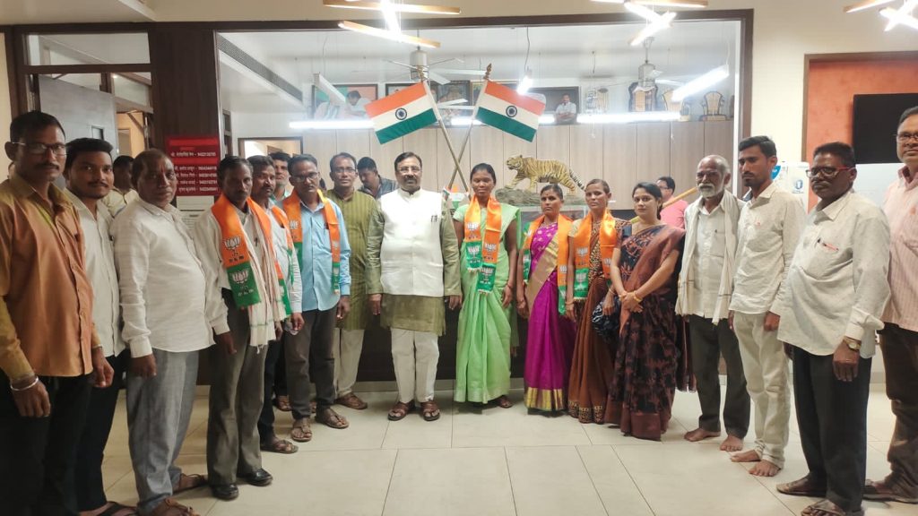 मा.ना.सुधीरभाऊ मुनगंटीवार, वने, मत्स्यव्यवसाय, व सांस्कृतिक मंत्री म.रा.यांच्या विकासाच्या झंजावतामुळे ग्रामपंचायत चक हत्तीबोडी येथील शिवसेनेच्या सरपंच सहित पाच सदस्याचा भाजपामध्ये पक्षप्रवेश….