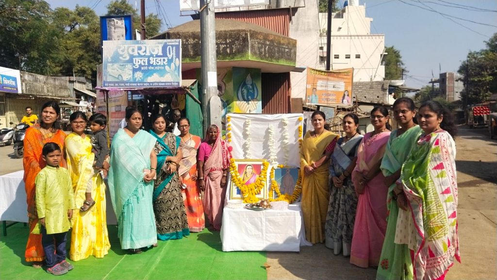 स्थानिक क्रांती चौकामध्ये शिवाजी महाराज उत्सव समितीच्या वतीने राजमाता जिजाऊ जयंती व स्वामी विवेकानंद जयंती साजरी करण्यात आली कार्यक्रमाच्या अध्यक्षस्थानी पुरुषोत्तम ओंकार होते यावेळी सानिध्य मांडवकर यांनी पोवाडा सादर केला तर सौ. गौरी घुंगुरूड, सौ. संगीता पिंपऱे. सौ. मोहनी बोबडे, सौ. ज्योत्स्ना राऊत, सौ. पूर्वा राऊत, सौ. वैशाली आष्टकर सैय्यद सलमा लियाकत अली सौ. स्वाती मांडवकर, सौ. भावना बहाळे यांच्या हस्ते मा जिजाऊंचे पूजन करण्यात आले याप्रसंगी पुरुषोत्तम ओंकार यांनी जिजाऊ पाळणा गाईला कार्यक्रमाचे सूत्रसंचालन राजू रोहनकर यांनी केले तर आभार प्रदर्शन अॅड. मंगेश बोबडे यांनी केले याप्रसंगी कृष्णराव राऊळकर, अशोकराव राऊत, शशिकांत धुमाळ,संजय दुरबुडे, राहुल बहाळे, मंगेश राऊत, अशोक पिंपरे, विवेक गवळी, उमाकांत उघडे, गोवर्धन वाघमारे, अरविंद तामगाडगे, सुरेंद्र ताटे,अॅड. किशोर मांडवकर, मधुकर गेडाम, राजू आजनकर, गजेंद्रन ठुने, वाल्मीक मेश्राम, रंजन आष्टकर, भास्कर वाघमारे ,महेंद्र फुलमाळी,सागर वर्मा, धीरज वैद्य, वीरेंद्र वार्हेकर, विनय मुनोत, कवडू येपारी,दिलीप कन्नाके, बि. यु. राऊत,भाऊराव ठाकरे,कोपरकर,मेंडूलकार साहेब, अॅड. अलोणे, भारत ठुणे,भगवानजी धनरे,अॅड. प्रितम वर्मा,आशिष इंगळे, यांची उपस्थिती होती.