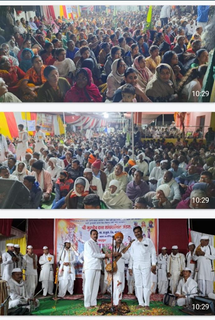 माथरा (ता.राजुरा) येथे आज दिनांक 21 जानेवारी 2023 रोजी सुरु झालेल्या श्री गुरुदेव दत्त सांप्रदायिक मंडळ, माथरा द्वारा आयोजित प. पु. श्री सद्गुरु नामदेव महाराज रोकडे यांच्या पुण्यस्मरणार्थ किर्तन महोत्सव व जाहीर सत्कार समारंभ कार्यक्रम आयोजित करण्यात आला. याप्रसंगी राष्ट्रीय कीर्तकार ह.भ.प.पुरुषोत्तम पाटील महाराज बुलढाणा यांनी उपस्थित हजारो अध्यात्म किर्तनप्रेमी रसिकांना कीर्तनातून मंत्रमुग्ध केले. कार्यक्रमाचे उद्दघाटक भाजपा जिल्हाध्यक्ष मा. देवराव भोंगळे, कार्यक्रमाचे अध्यक्ष क्षेत्रीय महाप्रबंधक मा. जी. पुल्लया, मुख्य अतिथी मा. सुदर्शनजी निमकर माजी आमदार राजुरा, भाजपा जिल्हा महामंत्री नामदेवराव डाहुले भाजपा तालुकाध्यक्ष सुनिल ऊरकुडे, सरपंच हरिदास झाडे, वेकोली चे एरीया प्लॅनिंग ऑफिसर पुल्लयाजी, हभप माणिक महाराज रोकडे, हभप दत्ता मसे महाराज, हभप गोहोकार महाराज, तुंबळे महाराज, वासुदेव पा.लांडे, उपसरपंच सौ. शारदा तलांडे, ग्रा. पं. सदस्य मारोती चन्ने, सौ.सोनू ठक, सौ.अल्का वैद्य, रामपूर येथील प्रकाश फुटाणे, दिपक झाडे, कार्यक्रमाचे प्रास्ताविक सरपंच हरीदास झाडे यांनी केले. माजी आमदार निमकर यांनी आपल्या मार्गदर्शन पर भाषणात गावातील सर्व ग्रामस्थांनी एकत्र येऊन लोकसहभागातून आपल्या गावाच्या सर्वांगीन विकासाचा या अध्यात्म कार्यक्रमातून संकल्प करावा. माजी आमदार निमकर यांनी याप्रसंगी “वृक्ष वल्ली आम्हा सोयरे वनचरे” या संत तुकाराम महाराजांनी शेकडो वर्षापूर्वी विषद केलेल्या अभंगाची आजच्या विज्ञण्यान युगात पर्यावरणासाठी किती गरज आहे हे कोरोना महामारित आपण प्रत्यक्ष अनुभवले आहे असे सांगितले. कीर्तन महोत्सव प्रसंगी अनेक मान्यवरांचा सत्कार करण्यात आला. कार्यक्रमाचे सूत्रसंचालन पंचायतराज व ग्रामविकास आघाडीचे संयोजक प्रदिप बोबडे व आभार हभप दत्ता मसे महाराज यांनी केले.
