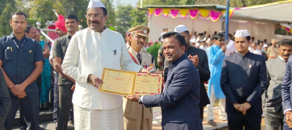 राष्ट्रीय कुटुंब कल्याण कार्यक्रम अंतर्गत चंद्रपूर जिल्ह्यातील उत्कृष्ट सर्जन म्हणून पोंभूर्ण्याचे तालुका आरोग्य अधिकारी तथा पोंभूर्णा ग्रामीण रूग्णालयाचे वैद्यकीय अधीक्षक डॉ.संदेश मामीडवार यांना प्रजासत्ताकदिनी सांस्कृतिक कार्य,वन व चंद्रपूरचे पालकमंत्री सुधीर मुनगंटीवार यांच्या हस्ते सन्मानित करण्यात आले.यावेळी जिल्हाधिकारी विनय गौडा, मुख्य कार्यकारी अधिकारी विवेक जाॅन्सन, जिल्हा पोलिस अधीक्षक रवींद्रसिंह परदेसी,मनपा आयुक्त विपीन पालीवाल यांची यावेळी उपस्थिती होती.