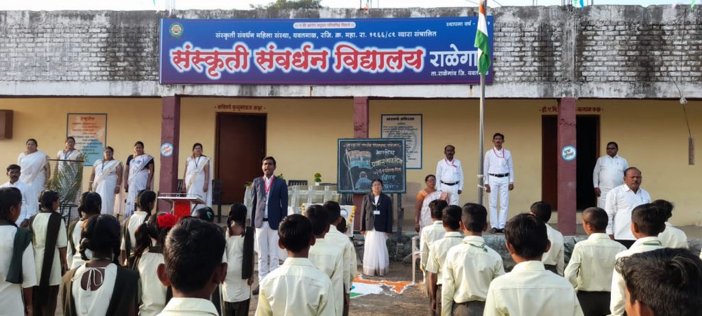 राळेगाव : दि. २६ जानेवारी (स्थानिक) येथील संस्कृती संवर्धन विद्यालयात शाळेच्या मुख्याध्यापिका मीनाक्षी येसेकर यांचे हस्ते ध्वज फडकवून मानवंदना देण्यात आली. त्यावेळी पंचायत समिती राळेगावच्या माजी उपसभापती तथा कर्तबगार महिला शेतकरी श्रीमती शीलाताई सलाम ह्या प्रमुख अतिथी म्हणून उपस्थित होत्या. यावेळी संविधानाचे प्रास्ताविक तसेच समतेची शपथ घेण्यात आली..विद्यार्थ्यांनी देशभक्तीपर गीत सादर केली. रोशनी कार्लेकर तथा आयुष वासेकर यांची प्रजासत्ताक दिनावर भाषणे झाली.दरवर्षीप्रमाणे तहसील कार्यालय, राळेगाव येथे आयोजित शासकीय ध्वजवंदनानंतर सांस्कृतिक कार्यक्रमात कु. मयुरी मडावी, जान्हवी काटकर, रोशनी कार्लेकर,पुनम बारेकर, सलोनी मोहिते, दीक्षा नान्हे, वैष्णवी नागमोते,तनुश्री धनवीज,स्नेहा सोनटक्के, मानसी आडे ह्या विद्यार्थिनींनी कोळीनृत्य सादर केले. प्रजासत्ताक दिनाच्या शुभेच्छा देऊन व मुलांना खाऊ वाटप झाले. सूत्रसंचालन तथा आभार प्रदर्शन शिक्षक योगेश मिटकर यांनी केले. कार्यक्रमाच्या यशस्वीतेसाठी सीमा देशमुख, दिनकर उघडे, देवेंद्र मून, राकेश नक्षिणे, ज्ञानेश्वरी आत्राम, सलमा कुरेशी, मुकुंद मानकर, भाग्यश्री काळे, विलास ठाकरे, अनंता परचाके, देवेंद्र मून, यांनी प्रयत्न केले. आपल्या अध्यक्षीय भाषणातून सलाम यांनी, शाळेबद्दल तसेच गुरुजनांविषयी गौरवोद्गार काढले. आपण याच शाळेत शिकलेलो असल्याचा अभिमानही व्यक्त केला. यावेळी विद्यार्थ्यांनी टाळ्यांचा प्रचंड कडकडाट करीत त्यांचे स्वागत केले.ध्वजारोहन समारंभाला सर्व विद्यार्थी, पालक, शिक्षक -शिक्षकेत्तर कर्मचारी उपस्थित होते.