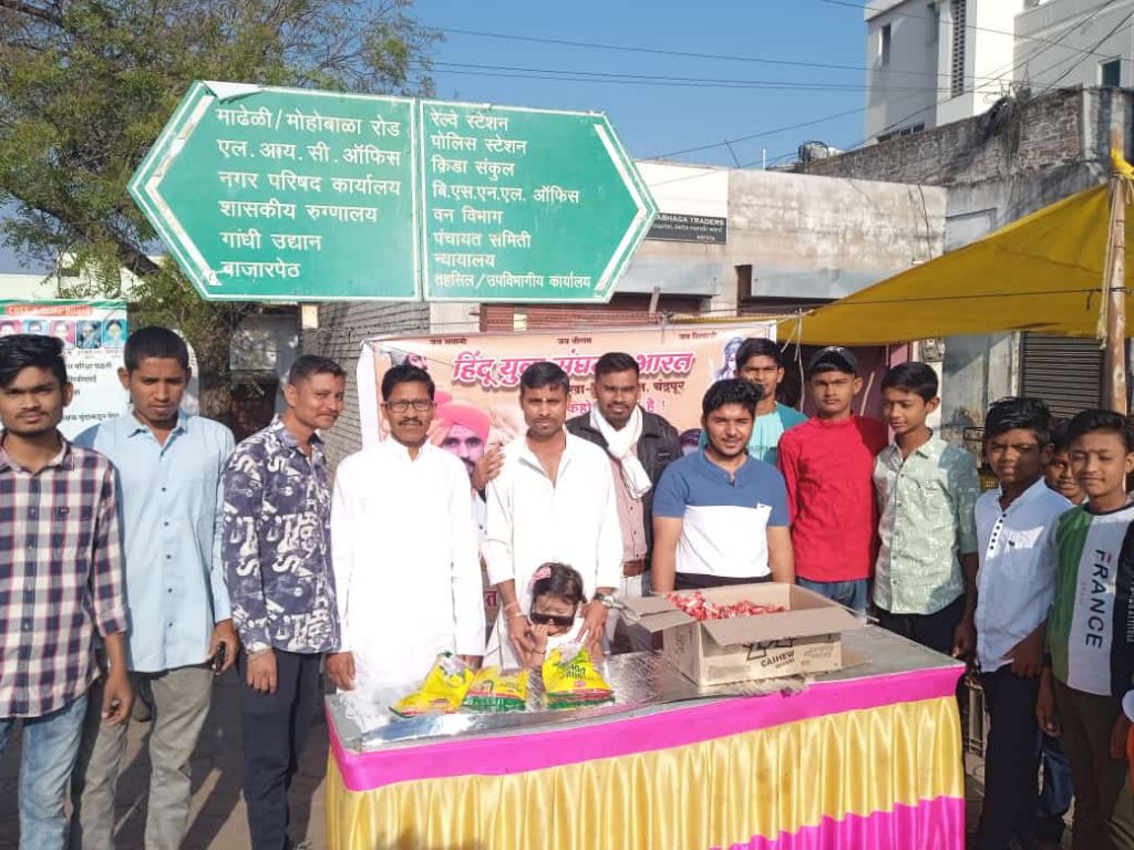 स्थानिक हिंदू युवा संघठन कडुन २६ जानेवारी , प्रजासत्ताक दिनानिमित्त शहिद योगेश डाहुले चौक जुना नागपूर नका येथे शालेय विद्यार्थी विद्यार्थीनी यांना बिस्किट पाकेट , फळ वाटप करण्यात आले यांचा लाभ शेकडो विद्यार्थी व विद्यार्थी ना यांनी घेतला सोबतच येणारे…जाणारे नागरिक यांना ही देण्यात आले हिंदू युवा संघठन चे जिल्हा अध्यक्ष राहुल खारकर ,जिल्हा उपाध्यक्ष मुन्ना पाठक, यांच्या पुढाकारने हा कार्यक्रम घेण्यात आला उपरोक्त कार्यक्रम यशस्वी करण्या करिता हिंदू युवा संघठन चे पदाधिकारी शहर अध्यक्ष धवल पटेल, शहर सचिव तुषार सचेती, शहर कोषाध्यक्ष सुमित घोरपडे, शहर संघटक मनोज पाराशर, शहर उपाध्यक्ष चेंतन चिंचोळकर, शुभम चौपने , कर्तव्य मेश्राम, श्रेयश बोधाने , प्रथमेश कुरेकार , वेदांत कुतरमारे ,आकाश तोडासे, सपनिल चौधरी ,कुणाल पिदुलकर, चेतन आसकर , समिर पिदुलकर, अक्षय पोहाने ,अनिकेत बोधाने ,आदित्य धिडसे, व अन्य पदाधिकारी व सदस्य उपस्थित होते या कार्याचे सर्वत्र प्रशंसा होत आहे….