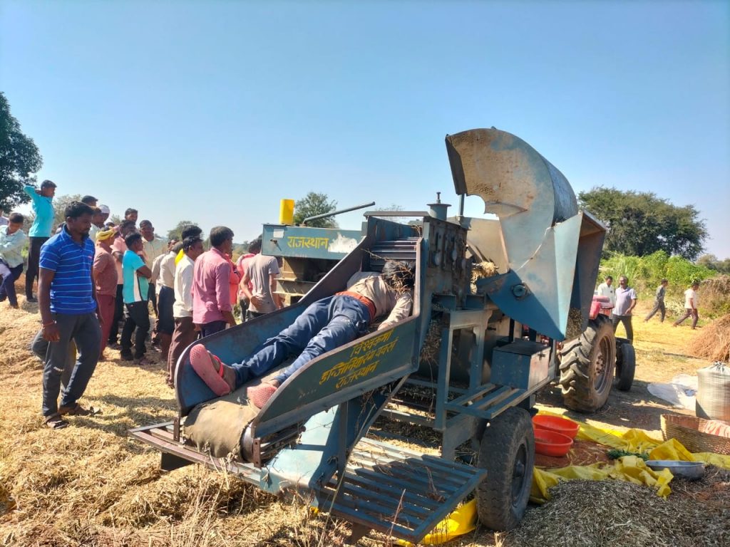 पोंभूर्णा:- तालुक्यातील चक नवेगाव येथील तरुणाचा थ्रेशर मशीन मध्ये अडकून दुदैवी मृत्यू झाला आणि त्याचा कुंटूबच नाही तर संपूर्ण गाव शोकसागरात बुडाला मन हेलावून टाकणारी हि घटणा… बेरोजगारीने जनू आजारा सारखं युवापिढीला ग्रासल आहे मिळेल तो काम करून आपला नि कुंटूंबाचा उदरनिर्वाह करायचं हि आजची वस्तुस्थिती आहे सध्या ग्रामीण भागात रब्बी हंगामातील पीक बहरून आलं असून थ्रेशर मशीनच्या माध्यमातून धान्य मळणी सूरू आहे पोटाची खळगी भरण्यासाठी चेक नवेगाव येथील तरूण महेश अरुण लोहे वय वर्ष २३ हा नेहमी प्रमाणे थ्रेशर मशीनवर पीकाची मळणी करन्याकरीता कामावर गेला मात्र नियतीच्या मनात काहीतरी वेगळंच होतं काम करीत असताना दुदैवानी त्याचा तोल मशीन मध्ये गेला आणि जीवणाचा करूण अंत झाला कुंटूबंच नव्हे तर संपूर्ण गाव शोकसागरात बूडाला महेश हा कुंदूंबातील कर्ता पुरुष होता आणि अचानक त्याच्या अशा निघून जान्यानी कुंटूबावर दुखःचे डोंगर कोसळले असून गावात सर्वत्र दुखःचे सावट पसरले आहे….