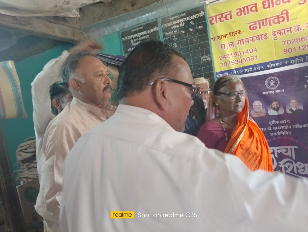 त्याच अनुषंगाने ढाणकी येथे “आनंदाचा शिधा” योजनेअंतर्गत शहरातील लाभधारकांना प्रत्येकी १०० रुपये प्रमाणे आनंदाचा शिधा वस्तूंचे वाटप करून स्वस्त धान्य दुकानदार हे शासनाच्या नियमानुसार आपले उद्दिष्ट पूर्ण करण्याचा प्रयत्न करतील असे यावेळी रामराव गायकवाड यांनी सांगितले