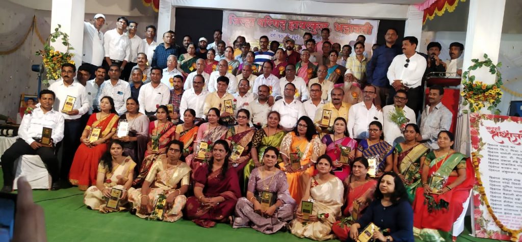 जिल्हा परिषद हायस्कूल भद्रावती शाळेच्या तब्बल तीस वर्षानंतर शिंदे मंगल कार्यालयातील सभागृहात आयोजित