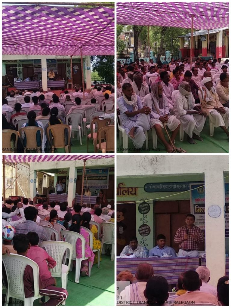 कृषी विज्ञान केंद्र यवतमाळ येथील कीटकशास्त्रज्ञ डॉ.प्रमोद मगर यांनी सोयाबीन हे स्वपरागसिंचित पीक आहे. या पिकाचे बियाणे सरळ वाहनाचे आहे.यामुळे दरवर्षी बियाणे बदलण्याची आवश्यकता नाही. मागील दोन वर्षात वापरलेली प्रमाणित बियाण्यापासून उत्पादित होणारे सोयाबीन हे शास्त्रीयदृष्ट्या पेरणीकरिता योग्य असते. घरचे बियाणे वापरताना चाळणी करून घ्यावी,बियाणे नाजूक असल्याने पोत्याची हाताळणी व वाहतूक करताना योग्य काळजी घ्यावी तसेच बीज प्रक्रिया केल्याशिवाय सोयाबीन ची पेरणी करू नये, बीज प्रक्रिया साठी उपयुक्त जैविक व रासायनिक औषधीचा वापर कसा करावा, कमी खर्चात जास्तीत जास्त उत्पादन घेण्याच्या पद्धतीचा तंत्रज्ञान याबाबत मार्गदर्शन केले तसेच कपाशी व सोयाबीन पिकावरील किडीचे नियोजन कसे करता येईल याविषयी सखोल मार्गदर्शन केले. यानंतर कृषी विज्ञान केंद्र यवतमाळ येथील अभियांत्रिकी शाखेचे विषय विशेतज्ञ श्री राहुल चव्हाण यांनी बीबीएफ तंत्रज्ञानाचे महत्त्व बीबीएफ लागवडीची पद्धत, टोकन पद्धत तसेच बीबीएफ लागवडीमुळे उत्पादनात होणारी वाढ तसेच बदलत्या वातावरणाची पीक पद्धतीवर परिणाम होत असल्याबाबतचे मार्गदर्शन केले. सदर कार्यक्रमा चे प्रास्ताविक तालुका कृषी अधिकारी श्री.अमोल जोशी यांनी केले तालुका कृषी अधिकारी श्री.अमोल जोशी यांनी कृषी विभागाच्या योजनेची माहिती शेतकऱ्यांना दिली या नंतर श्री कल्पेश वाघमारे यांनी उपस्थित शेतकऱ्यांना कृषी विभागाचे विविध योजनेची माहिती तसेच सोयाबीन पेरणीचे अष्टसूत्री, पेरणीपूर्वी उगवण क्षमता तपासणे, बीज प्रक्रिया तसेच कृषी विभागाच्या विविध योजनेची माहिती. तसेच प्रधानमंत्री सुष्म अन्नप्रक्रिया उद्योगाची माहिती दिली, सदर कार्यक्रमात, मंडळ कृषी अधिकारी श्री.कल्पेश वाघमारे आत्माचे बिटीएम श्री मयूर शिरभाते,तंत्र कृषी अधिकारी श्री.राजू ताकसांडे साहेब तसेच खडकी येथील कृषी सहाय्यक श्री.प्रकाश ढोले तसेच रिधोरा येथील प्रगतशील शेतकरी हरीशभाऊ काळे व खडकी येथील सरपंचा सौ.नहातेताई तसेच महा डी बी टी तंत्रज्ञान विषयक श्री.प्रितम इंगोले तसेच खडकी येथील प्रगतशील शेतकरी देविदास काळे व हेमंत वाभिटकर व विभागाचे इतर अधिकारी व कर्मचारी व प्रगतशील शेतकरी व पंचकृशीतील महिला व पुरुष शेतकरी मोठ्या संख्याने उपस्थित होते, सदर कार्यक्रमाचे आभार प्रदर्शन कु श्रुती भोयर कृषी सहाय्यक झाडगाव यांनी केले.