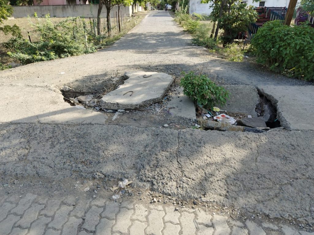 राष्ट्रीय महामार्ग क्रमांक तीनशे एकसष्ट बी मधून राळेगांव शहरातील प्रभाग क्रमांक सहा, सात, आठ कडे जाणाऱ्या ॲप्रोच सिमेंट रस्त्याला नालीच्या मधोमध एक खूप मोठं भगदाड गेल्या पाच वर्षांपासून पडलं आहे.पण नागरिकांनी खूप वेळा या संदर्भात नगर पंचायत राळेगांव ला तक्रारी दिल्या आहेत पण दुर्लक्षित धोरणा मुळे हे भलं मोठं भगदाड आपल्या दुरुस्ती च्या प्रतिक्षेत आहे. या सह पथदिवे बंद, मधोमध असलेले रेलिंग तुटलेले, दोन्ही बाजू घ्या नाल्या बुजंलेल्या आहे.