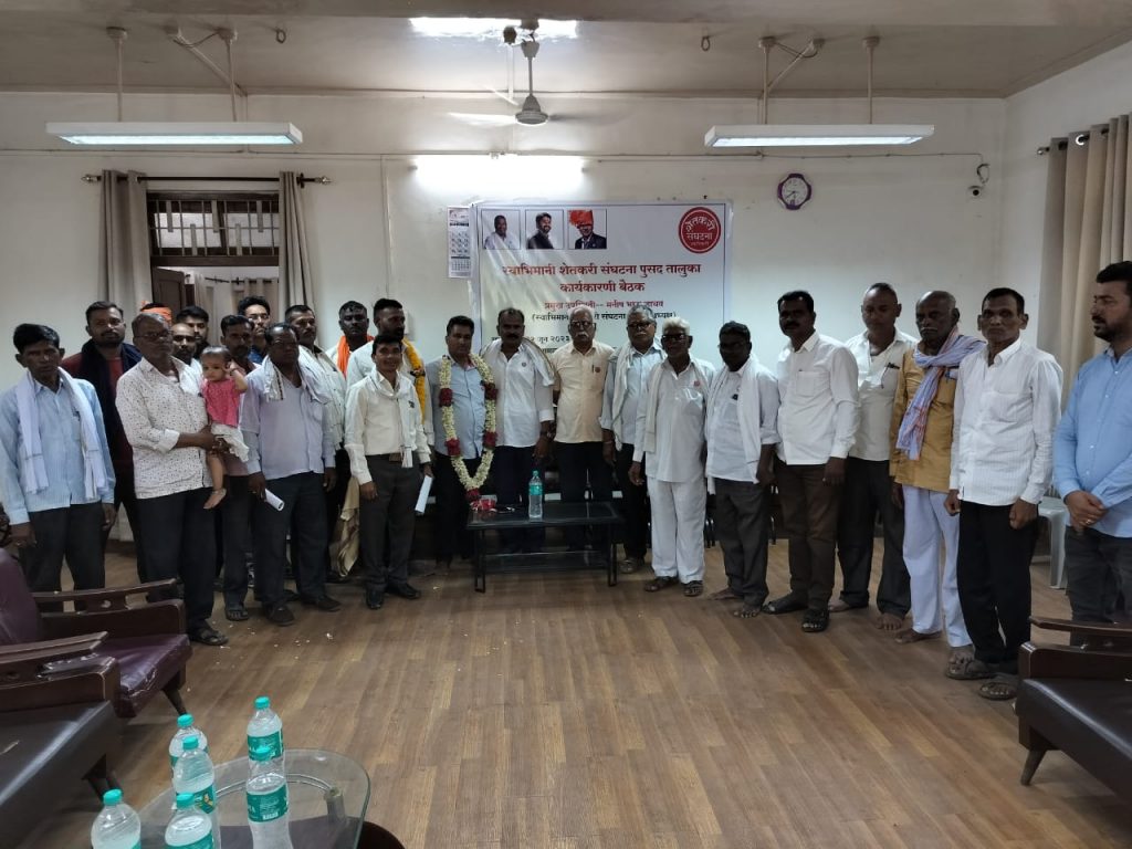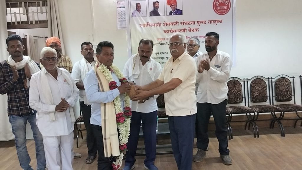 स्वाभिमानी शेतकरी संघटनेचे पुसद तालुका कार्यकारिणीची बैठक संपन्न झाली या कार्यकारणीच्या बैठकीला मार्गदर्शक व प्रमुख पाहुणे म्हणून ज्येष्ठ शेतकरी नेते अविनाश भाऊ पोळकट यांची उपस्थिती लाभली होती या कार्यकारणीच्या बैठकीत कार्यकर्त्यांच्या सर्व संमतीने स्वाभिमानी शेतकरी संघटनेची पुसद तालुका अध्यक्ष म्हणून प्रेमराव रामराव सरगर तर म्हणून विनोद भाऊ केवडे यांची उपाध्यक्षपदी नियुक्ती करण्यात आली यावेळी या नवनिर्वाचित पदाधिकाऱ्यांचा सत्कार सोहळा संपन्न झाला जेष्ठ शेतकरी नेते अविनाश भाऊ पोळकट यांचं शाल व श्रीफळ पुष्पगुच्छ देऊन स्वाभिमानी शेतकरी संघटनेचे जिल्हाध्यक्ष मनीष जाधव यांनी सत्कार केला आज झालेल्या कार्यकारणीच्या बैठकीमध्ये शेतकऱ्यांच्या विविध समस्यावर चर्चा करण्यात आली व आगामी काळात शेतकऱ्यांना संघटित करून लढा देण्याबाबत व संघटनेची विविध कार्यपद्धतीबाबत ज्येष्ठ शेतकरी नेते अविनाश भाऊ पोळकट यांनी विस्तृत मार्गदर्शन केले शेतकऱ्यांच्य या कार्यकारणी बैठकीला प्रेम राव सरगर गाजीपुर , विनोद केवढे , पुसद धीरज भाऊ पांडे पुसद , अमोल झरकर , यु के राठोड , प्रमोद दीक्षित , केशव भाऊ खंदारे ,निलेश भाऊ सरगर , अशोक भाऊ चव्हाण , ज्ञानेश्वर भाऊ राठोड , भैय्या गाडेकर , गोलू चव्हाण ,देविदास झरकर ,आयुब खान पठाण , सिकंदर खान पठाण मराठी दिलीप भाऊ बोरकडे अशोक गुलाब राठोड या कार्यकारणीच्या बैठकीला पुसद तालुक्यातील शेतकरी मोठ्या संख्येने उपस्थित होते या कार्यक्रमाचे सूत्रसंचालन हे धीरज भाऊ यांनी केले तर कार्यक्रमाचे समारोप आयुब भाई पठाण यांनी केले अतिशय खेळीमेळीच्या वातावरणात पुसद तालुका स्वाभिमानी शेतकरी संघटनेचे कार्यकारणी बैठक संपन्न झाली