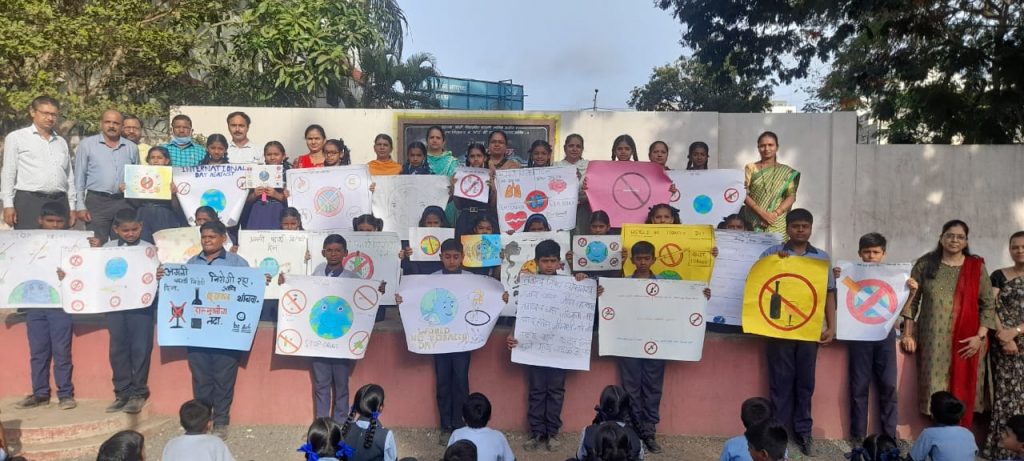 महात्मा गांधी विद्यामंदिर नाशिक संचलित के.बी.एच.विद्यालय पवननगर सिडको नाशिक या विद्यालयात 26 जून… अमली पदार्थ विरोधी दिन दिवस साजरा करण्यात आला. यावेळी विद्यालयाचे मुख्याध्यापक श्री. देवरे यु.बी.सर यानी विद्यार्थाना मार्गदर्शन केले .आजचा विद्यार्थीउद्याच्या समाजाचा जागरूक व सजग नागरिक असल्याने चागल्या सवयीचे पालन आणि व्यसना पासून दुर रहावे . त्या निमित्ताने विद्यालयात वक्तत्व,पोस्टर,निबंध स्पर्धा घेण्यात आल्या या विद्यार्थाना गिते व्ही.आर आणी सोनवणे के.एस. यानी केले. सई सोनवणे 10 वी ची विद्यार्थीनी मनोगत व्यक्त केले. कार्यकमास सर्व शिक्षक बंधु- भगिनी शिक्षकेतर कर्मचारी उपस्थित होते.कार्यक्रमाचे सुञसंचालन श्री .पवार.एस.पी.यांनी तर आभार श्रीमती.कविता सोनवणे यांनी मानले.