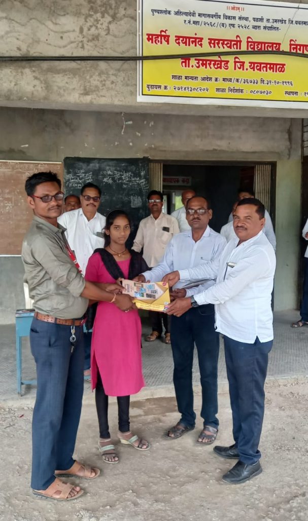 आज दिनांक 30 जून 2023 शाळेच्या पहिल्या दिवशी महर्षी दयानंद सरस्वती विद्यालय निंगणूर ता उमरखेड जि. यवतमाळ येथील शाळेचे मुख्याध्यापक श्री राजेंद्र कवाने सर व पत्रकार श्री विलास राठोड सर यांच्या हस्ते वर्ग 5 ते 8 च्या विद्यार्थ्यांना शिक्षण विभागाकडून मिळणाऱ्या मोफत पुस्तकांचे वाटप करण्यात आले .या प्रसंगी शाळेतील शिक्षक श्री सुभाष कहुळकर सर , श्री पंडित जाधव सर , श्री विठ्ठल ढाकरे सर , श्री शिवहार दुधेवार सर , श्री उत्तम तास्के सर , श्री राम मिराशे सर , सुमन ढोरे मॅडम , वृषाली बेद्रे मॅडम शिक्षकेत्तर कर्मचारी श्री बापूराव पेंदे , श्री पंजाबराव देशमुख , रुख्मिना तास्के , प्रेम खूपसे , कांबळे उपस्थित होते .