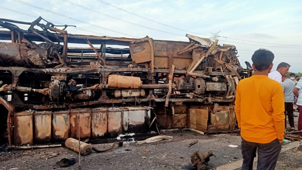 या अपघातामध्ये बस जाळून खाक झाली आहे. या घटनेची माहिती मिळताच तेथील स्थानिक नागरिकांनी आणि पोलिसांनी घटनास्थळी धाव घेऊन बचाव कार्यास सुरुवात केली. या बसमधील 20 प्रवाशांचे मृतदेह बाहेर काढले असून या सर्व मृतांची ओळख पटवण्याचे काम सुरू आहे.