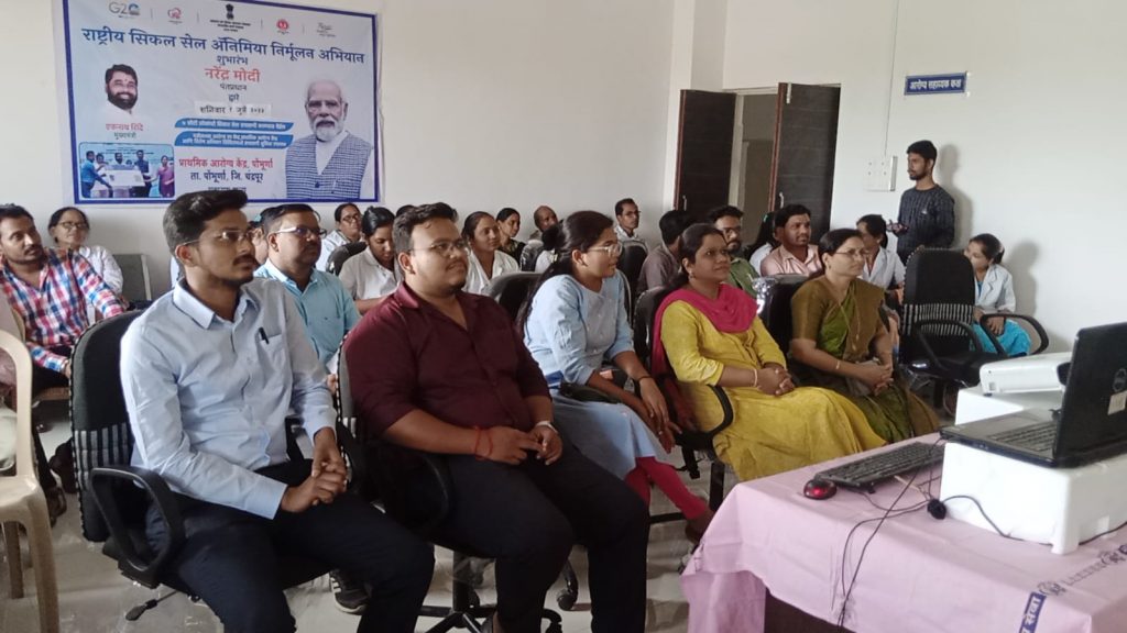 याप्रसंगी पोंभूर्णा ग्रामीण रुग्णालयात सिकलसेल ॲनिमियाची चाचणी करून संशयित रुग्णांना सिकलसेल जनुकीय स्थितीच्या कार्ड चे वितरण करण्यात आले. तसेच आयुष्यमान भारत प्रधानमंत्री जन आरोग्य कार्ड सबंधित माहिती देण्यात आली.तसेच आभा कार्डची नोंदणीही करण्यात आली.