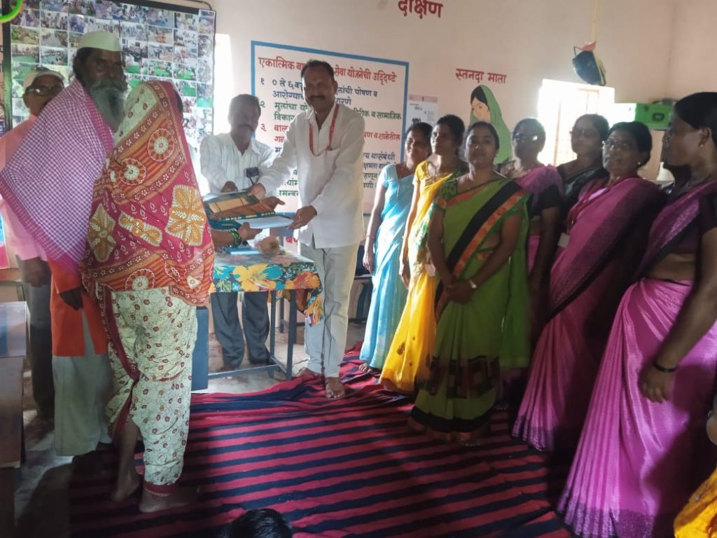 एकात्मिक बाल विकास सेवा योजना प्रकल्प राळेगाव अर्तगत अंगणवाडी केन्द्र जळका येथे अंगणवाडी सेविका लता अवतारे यांच्या कल्पनेतुन व पुढाकाराने सेवा निवृत झालेल्या मदतनीस श्रीमती वच्छलाबाई भाजपाले व बेबीबाई ठुठुरकार यांचा साडी चोळी देवुन छोटेखानी सत्कार करण्यात आला. या कार्यक्रमाच्या अध्यक्षस्थानी श्री सागर विठाळकर बाल विकास प्रकल्प अधिकारी राळेगाव हे होते, प्रमुख उपस्थिती म्हणून श्री.ठाकरेसर मुख्याध्यापक,फुलझेलेसर, कोहचाडेसर,जगदिश ठाकरेसर केन्द्र प्रमुख , सागर इंझळकर शिक्षक,आडे शिक्षिका,श्रीमती लता माटे,पंचफुला पांडे, सावित्री पवार, गुंफा किनाके, योगीता सिडाम, लता कोळसे, हभप विठ्ठल महाराज भाजपाले, हभप माणीकमहाराज पाल, सिमा मेश्राम,कैलास मेश्राम हे होते. कार्यक्रमाचे सूत्रसंचालन लताताई माटे व प्रास्ताविक लता अवतारे यांनी केले, यावेळी मान्यवरांनी आपले मनोगत व्यक्त केले. दोन्हीही मदतनीसला सेवा निवृत झाल्यानंतर लगेचच एकरकमी लाभ मिळाला त्यामुळे दोन्ही मदतनीस यांनी आनंद व्यक्त केला. प्रत्येक ठिकाणी मदतनीस सेवा निवृत झाल्यानंतर त्यांचा सत्कार घेणे ही बाब अत्यंत कौतुकास्पद आहे, सर्व मदतनीस यांचा सेवा निवृत नंतर सत्कार झाला पाहिजे अशी भावना विठाळकर साहेब यांनी मनोगतावर व्यक्त केली.