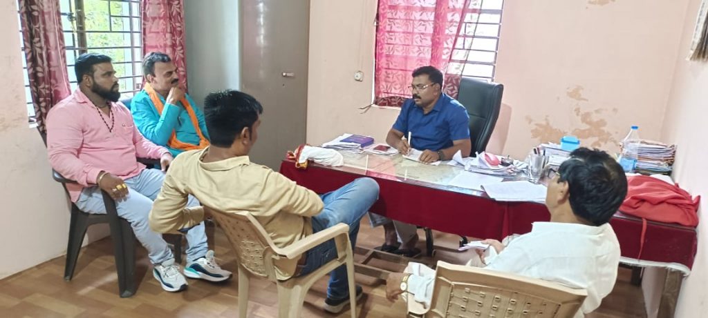 राळेगाव शहरातील गेली पाच वर्षांपासून घरकुल लाभार्थींना त्यांच्या जागेचे पट्टे देण्याबाबत प्रशासन दिरंगाई करीत आहे, यासाठी आंदोलन मोर्चे सुद्धा काढण्यात आले होते कित्येक दिवसापासून लाभार्थी हे ताटकळत असून त्यांना लाभ घेता येईना. काही दिवसाआधी शिवाजी नगर येथे मोजणी करण्यासाठी आले होते दोन दिवसा नंतर मशीन बंध पडली तेव्हा पासून मोजणी करण्यासाठी आलेच नाही असे नागरिकांकडून ऐकण्यात येत आहे. शहरातील बऱ्याच प्रभागा मध्ये अजूनपर्यंत पटे मिळाले नसून नवीन कुटुंब घरकुल पासून वंचित राहत आहे. अनेकांनी याचा पाठपुरावा करून सुद्धा हि कामे निकाली लागली नसून येथील अधिकारी ढकलचाल करीत आहे, त्याबाबत जाब विचारण्यासाठी आज शिवसेनेचे शिष्टमंडळ भुमि अभिलेख कार्यालय येथे उप अधिक्षक भारत गवई साहेब यांच्याशी घरकुल लाभार्थी यांच्या जागेची त्वरित मोजणी करुन पट्टे वाटप करण्यासंदर्भात प्रदिर्घ चर्चा करण्यात आली तसेच नगर पंचायत कडे चार लाख सत्ताविस हजार रुपये बाकी असून दोन लाख हे भरण्यात आले आहे तरी लवकरच मोजमाप करण्यास सुरुवात केल्या जातील अशे सांगण्यात आले, तांत्रिक अडचण व अपुरे मनुष्यबळ असल्यामुळे दिरंगाई झाली असून गवई साहेबांनी प्रकरण मार्गी लावुन सहकार्य करण्याचे अभिवचन शिवसेनेच्या शिष्टमंडळाला दिले त्यावेळी उपस्थितीमध्ये शिवसेना तालुका प्रमुख विनोद भाऊ काकडे, शहर प्रमुख राकेश भाऊ राऊळकर ,शिवसेना शहर संघटक इमरान पठाण, व्यापारी आघाडीचे शहर प्रमुख सुनिल क्षिरसागर, जेष्ठ शिवसैनिक शंकर भाऊ गायधने यांची उपस्थिती होती.