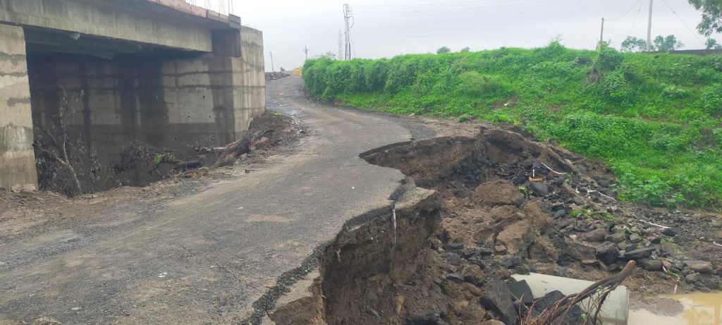 पवनार – सेवाग्राम राष्ट्रीय महामार्ग क्र. 353 आय या महामार्गावरील शुक्रवार दि. 21 जुलै 2023 रोजी दिवस भर झालेल्या पाऊसा च्या पाण्यामुळे नागझरी नामक पवनार गावापासून हाकेच्या अंतरावर असलेल्या नाल्यावरील महामार्गा वरील नविन पुलाच्या बांधकामा करिता वाहतुकीचा साठी 4 फूट व्यासाच्या एकेरी सिमेंट पाईप वर माती मुरूम टाकून तयार करण्यात आलेला वळण रस्ता पुर्ण पणें खचला असून काल रात्री पासून वाहतुकी करिता पूणपणे बंद करण्यात आला असून पवनार वरून सेवाग्राम कडे जाणारी वाहतूक वर्धा मार्गे वळविण्यात आलेली आहे.तसेच सेवाग्राम कडून पवनार कडे येणारी वाहतूक वर्धा मार्गे वळविण्यात आली आहेत. सदर मार्गाने कोणी हि आज प्रवास करू नये.
