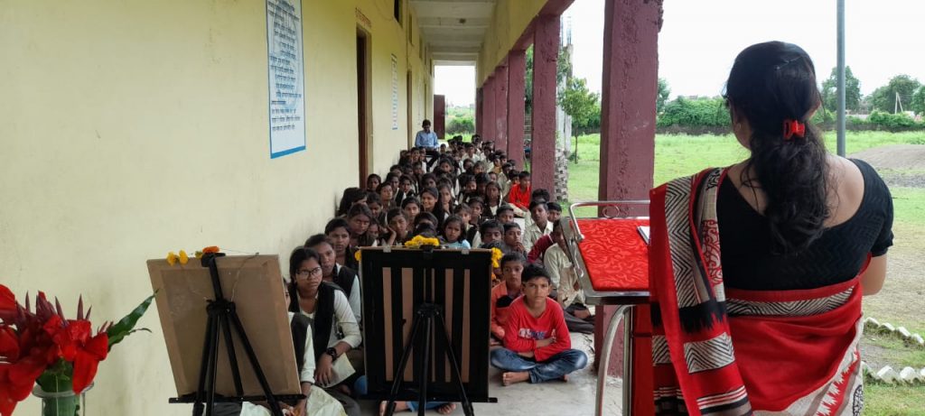 जान्हवी काटकर व मानसी आडे या विद्यार्थिनी साहित्यिक अण्णाभाऊ साठे यांचे ‘ स्मशानातील सोने ‘, पाठाचे अभिवाचन केले. तर लहान मुलांसाठी दहा ओळींचा निबंध देण्यात आला.