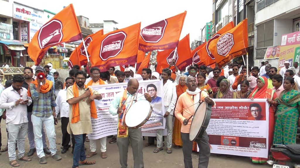 वाशीम – जिल्हयात ओला दुष्काळ जाहीर करण्यासह शेतकर्यांना हेक्टरी १.५० हजार अनुदान वितरीत करणे व इतर अनेक मागण्यांच्या पुर्ततेसाठी रविवार, १३ ऑगष्ट रोजी महाराष्ट्र नवनिर्माण सेनेच्या वतीने जिल्हा संपर्क नेते विठ्ठल भाऊ लोखंडकर जनहित च्या राज्य उपाध्यक्ष प्रा संगीता चव्हाण यांच्या मार्गदर्शनात जिल्हाध्यक्ष मनिष डांगे यांच्या नेतृत्वात जिल्हाधिकारी कार्यालयावर भव्य जनआक्रोश मोर्चा नेण्यात आला. मोर्चाचे आयोजन तालुका संघटक रघुनाथ खुपसे यांनी केले.