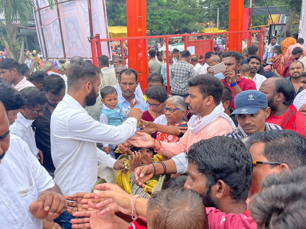 नागपंचमी च्या पावन पर्वावर भद्रावती तालुक्यातील प्रसिद्ध असलेल्या नागमंदिरात दर्शनासाठी आलेल्या भाविक भक्तांना फळ वाटपाचा कार्यक्रम संपन्न झाला.