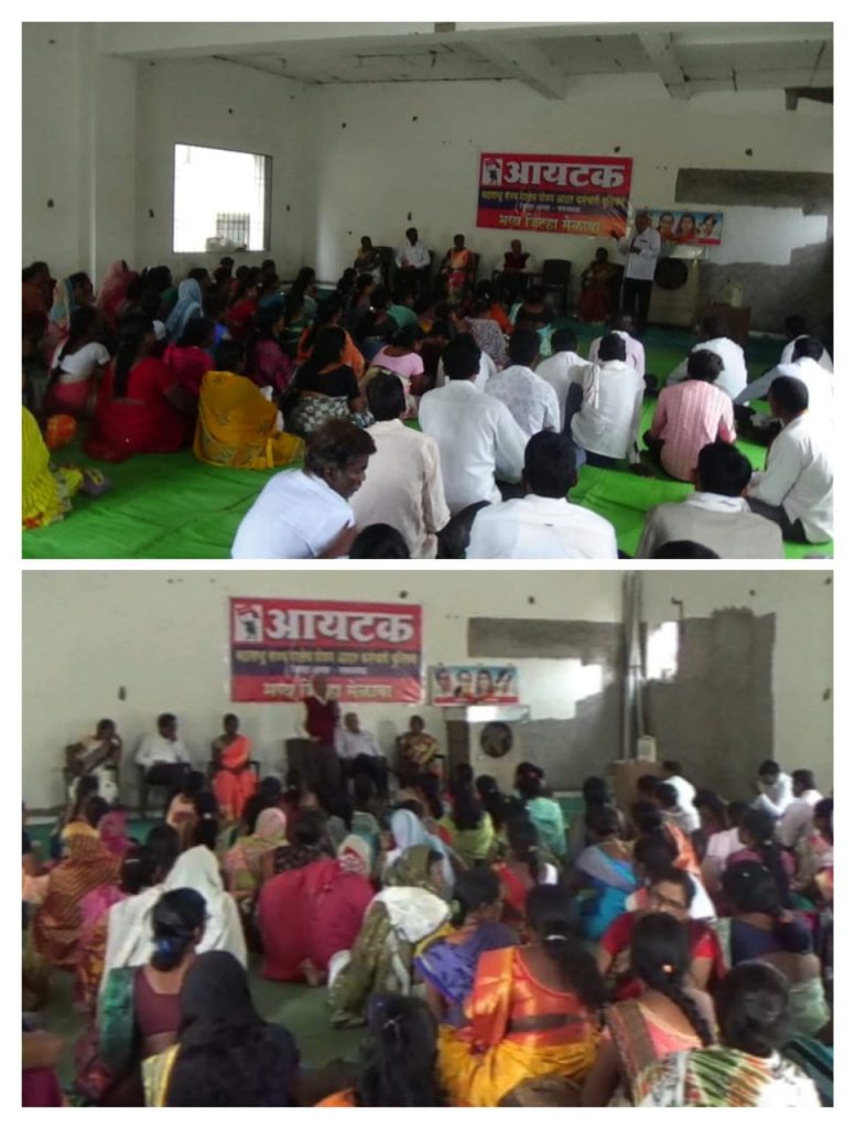 आयटक , महाराष्ट्र राज्य शालेय पोषण आहार कर्मचारी युनियन यवतमाळ जिल्हा मेळावा नुकताच संपन्न झाला मेळाव्याचे मार्गदर्शक कॉ.भगवान पाटील, कामगार नेते, कोल्हापुर , म्हणाले गेल्या 15 ते 20 वर्षांपासून राष्ट्रीय शालेय पोषण आहार योजनेत काम करणाऱ्या कर्मचाऱ्यांना रू.1500/- मीळत होते आता एप्रिल पासून आपल्या आंदोलनाच्या रेट्यामुळे राज्याने एक हजार वाढ केली आहे .परंतु ही सरकारने केलेली वाढ ही अतिशय तुटपुंज्य असुन या जिवघेण्या महागाईत या मानधनात जगणे कठीण आहे त्यामुळे किमान वेतनासाठी राज्यव्यापी लढा अधिक तीव्र करणार असे प्रतिपादन त्यांनी मेळाव्याला संबोधितांना केले. मेळावा स्थानिक श्रमशक्ती भवन येथे उत्सहात संपन्न झाला.सर्व प्रथम डॉ.बाबासाहेब आंबेडकर , सावित्रीबाई फुले, अन्नाभाऊ साठे, शहीदे आझाद भगतसिंग यांचे फोटोला हार अर्पन करून सुरवात करण्यात आली.