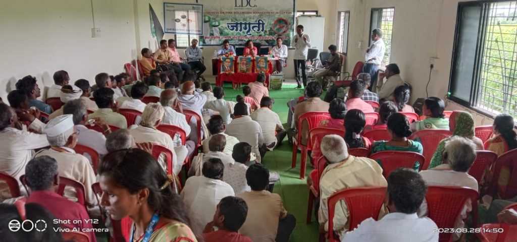 दिनांक 28 ऑगस्ट 2023 रोजी ग्रामपंचायत हॉल, हिवरा दरणे येथे कापूस उत्पादक शेकऱ्यांसाठी एलडीसी गुलाबी बोंडअळी नियंत्रण जनजागृती तसेच शेतकरी मार्गदर्शन कार्यक्रम साजरा करण्यात आला.