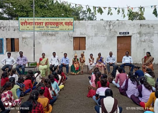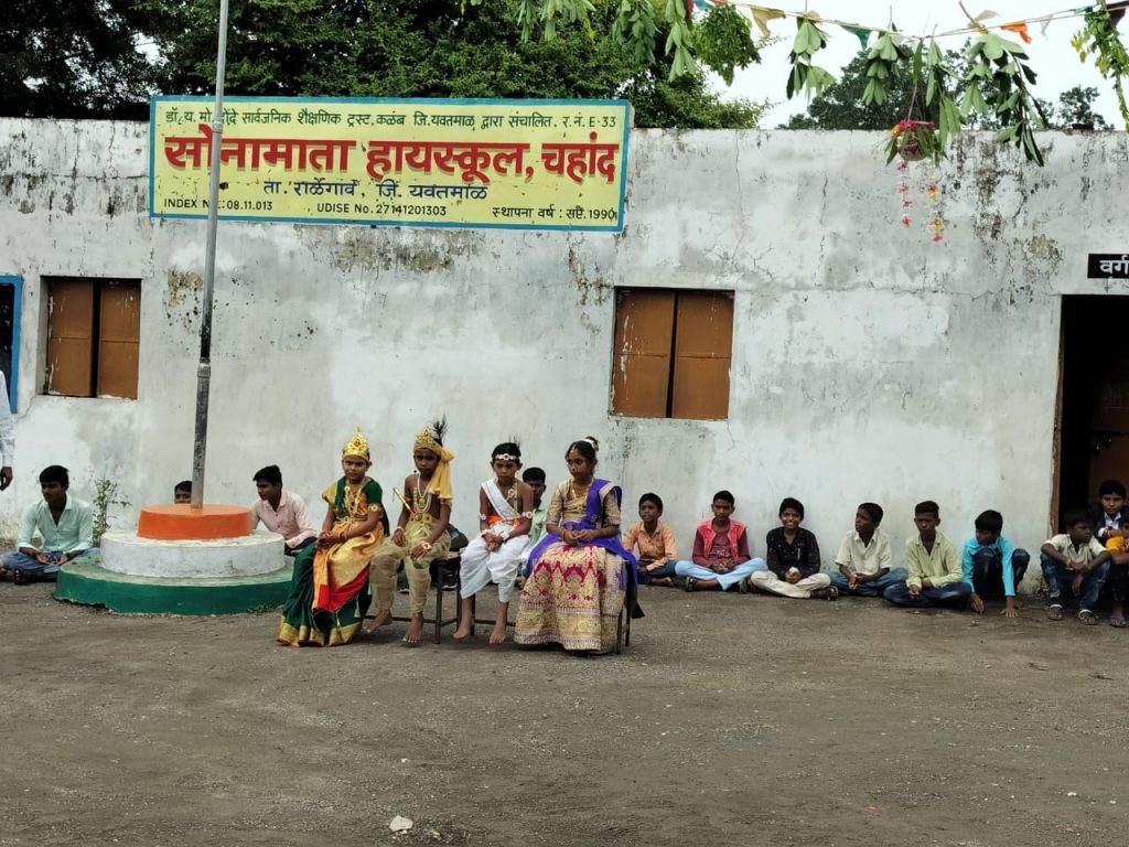 श्रीकृष्ण जन्माष्टमी निमित्ताने सोनामाता हायस्कूल चहांद येथे दहीहंडी सोहळा मोठ्या उत्साहात पार पडला.या कार्यक्रमासाठी वर्ग 5 चे विद्यार्थी सोहम कोल्हे, वेदांत मांडवकर यांनी श्रीकृष्णाची तर श्रावणी महाजन, वैष्णवी मांडवकर यांनी राधेची अतिशय सुंदर अशी वेशभूषा केली होती. श्रीकृष्ण जन्माष्टमी निमित्त शाळेत वर्ग पाच ते दहाच्या विद्यार्थ्यांनी श्रीकृष्णाच्या गाण्यावर अतिशय अप्रतिम असे नृत्य सादर केले सादर केले. त्यानंतर सर्व विद्यार्थ्यांनी व शिक्षकांनी श्रीकृष्णाच्या गाण्यांवर ताल धरला. या कार्यक्रमात सर्वत्र उत्साहाचे वातावरण होते. यानंतर शाळेच्या पटांगणावर दहीहंडीचा कार्यक्रम घेण्यात आला. विद्यार्थ्यांनी शिक्षकांच्या मदतीने पाना फुलांनी सजवलेली सुबक दहीहंडी उंचीवर टांगली. यानंतर विद्यार्थ्यांनी थरावर थर तयार करून दहीहंडी फोडली. या कार्यक्रमाच्या निमित्ताने शाळेतर्फे गोपाळ काला तयार करण्यात आला. सर्व विद्यार्थ्यांना केल्याचे वाटप करण्यात आले. विद्यार्थ्यांनी अतिशय आनंदाने काल्याचा आस्वाद घेतला. अशाप्रकारे सोनामाता हायस्कूल चहांद येथे श्रीकृष्ण जन्माष्टमीनिमित्त दहीहंडी सोहळा साजरा करण्यात आला. या कार्यक्रमाच्या यशस्वीतेसाठी शाळेचे मुख्याध्यापक, शिक्षक, शिक्षकेतर कर्मचारी व सर्व विद्यार्थी यांनी परिश्रम घेतले.