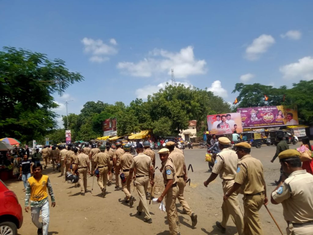 गणेश उत्सव, गौरी, ईद, दुर्गाउत्सव, महालक्ष्मी आदी विविध सण उत्सवाच्या पार्श्वभूमीवर 19 सप्टेंबरला उपविभागीय पोलीस अधिकारी गणेश किंद्रे सर व ठाणेदार अजित जाधव यांच्या मार्गदर्शनाखाली वणी पोलीस विभाग, डी बी पथक, वाहतूक पोलीस विभाग, होमगार्ड सर्व एकत्र येत सण उत्सवाच्या काळात कोणतेही गाल बोट होऊ नये करिता आम्ही सज्ज असल्याचे बोलके चित्र पोलीस विभागाकडून वणीकरांना पहावयास मिळाले, शहरातील मुख्य मार्गाने संचालन करीत हा रूट मार्च काढण्यात आला. ….
