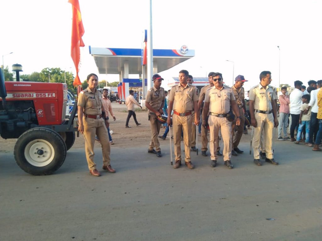 पोलीसांचा फौजफाटा ठिकठिकाणी तैनात,आगामी काळात गणेशउत्सव स्थापनेपासून पुढील १० दिवस गणेश उत्सवाच्या पार्श्वभूमीवर ढाणकी शहरात शांतता व सुव्यवस्था अबाधीत राखण्यासाठी पोलीस प्रशासनाने जोरदार तयारी केली आहे.काही गुन्हेगारावर पोलीस स्टेशनच्या हद्दीबाहेर जाण्याच्या नोटीसा बजावल्या तर अनेक जणांवर प्रतिबंधात्मक कारवाईचा बडगा उगारला आहे. गणेशभक्तांना आरती व इतर सांस्कृतीक कार्यक्रमाला भयमुक्त वातारणात बाहेर पडूण हजेरी लावता यावी म्हणून ठिकठिकाणी पोलीस बंदोबस्त तैनात ठेवला आहे.ठाणेदार सुजाता बन्सोड,पोलीस उपनिरीक्षक शिवाजी टीपूर्णे हे शहरातील हालचालीवर बारकाईचे लक्ष ठेवीत आहेत.