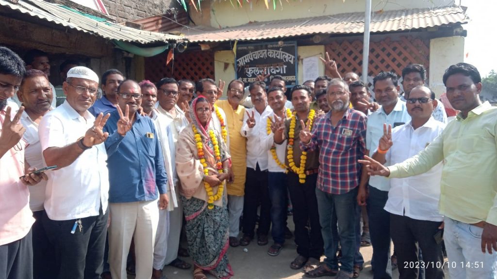 ग्रा पं चे सर्व सदस्य उपस्थित होते यावेळी सौ सारजा बाई वाघमारे यांचेवर सर्वच स्तरातून अभिनंदन होत आहे.
