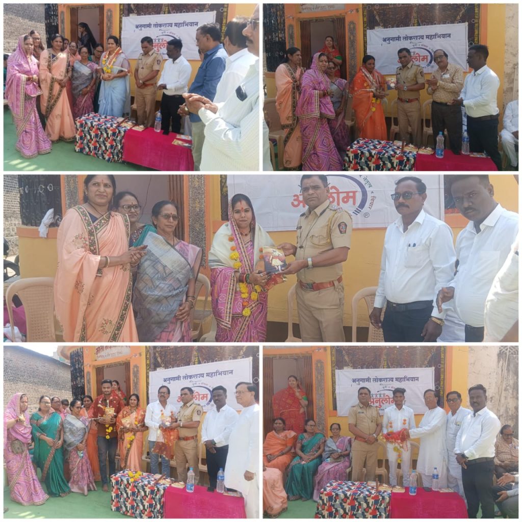 अनुलोम अनुगामी लोकराज्य महाभियाना अंतर्गत नवरात्र निमित्त सम्मान नारीशक्ति या अभियानात बाभुळगाव , राळेगाव येथील समाजातील उत्कृष्ट कामगिरी करणाऱ्या मातृ शक्तींचा सन्मान हाच आमचा संकल्प बाभुळगाव येथील सौ.ललिताताई उमेशजी वर्मा, राळेगाव क्षेत्रातील मार्कण्डिय पब्लिक स्कूल प्राचार्या डॉ. सौ.शितल संतोष कोकुलवार,सौ.वंदनाताई शंकरजी खुनकर, सामाजिक कार्यकर्ते सौ.संतोषीताई राजजी वर्मा यांचा सत्कार करण्यात आला या सत्कार सोहळ्यात चिकाटीची कामगिरी करणाऱ्या चि.सुहास उमाटे यांनी स्वखर्चाने खरड्या पासुन भोजाजी महाराजांची हुबेहूब प्रतिकृती मंदीर तयार केले त्यांचा ही सत्कार करण्यात आला.भवाणी माता मंदीराच्या भक्तांनी श्री.दिलीप किसनाजी पावडे यांच्या सौ.अर्चना दिलीपजी पावडे ,चि.आकाशजी भोकरे यांनी मंदीरात चोरीच्या उद्येश्याने आलेल्या चोरांना पोलीसांच्या स्वाधीन केले.एक जागृत नागरिक म्हणुन त्यांच्याही सत्कार करण्यात आला.भवानी माता मंदीराचे अनेक भक्त उपस्थित होते जयप्रकाशजी वर्मा, राजेंद्रजी वर्मा,दिलीपजी वर्मा,अशोक जी वर्मा,राजजी वर्मा ,तसेच वार्ड नं.11चे उमेदवार सौ.ज्योत्स्ना राऊत, सौ.कोपकर ताई,नगर सेवक संतोषजी कोकुलवार त्यांच्या सत्कार करण्यात आला.