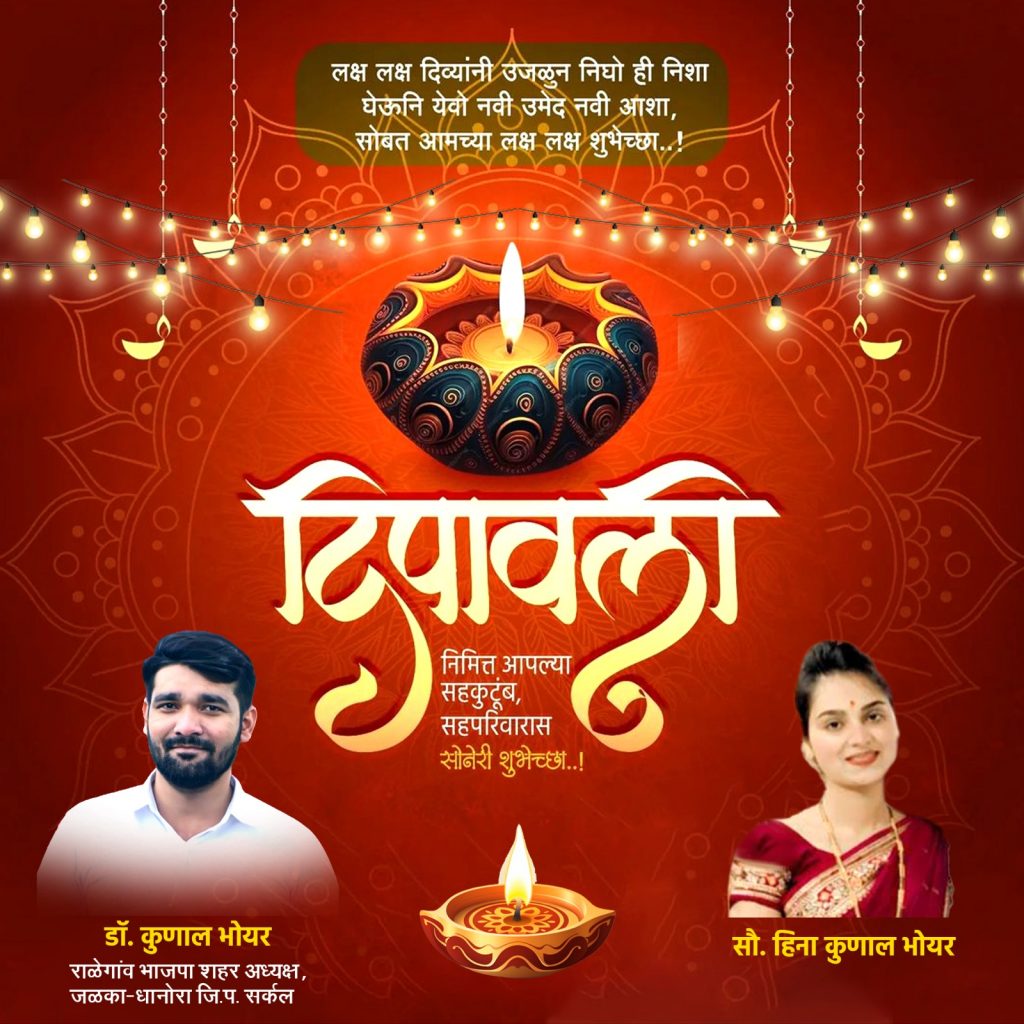 यवतमाळ जिल्ह्यातील समस्त जनतेला दिवाळी सणाच्या हार्दिक शुभेच्छा: डॉ.कुणाल भोयर व सौ.हिना कुणाल भोयर