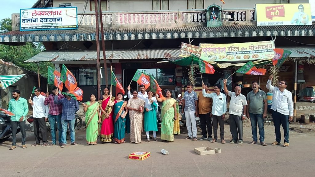 छत्तीसगड, मध्यप्रदेश,राजस्थान मधील भारतीय जनता पार्टी च्या विजयाचा जल्लोष मा सुधीरभाऊ मुनगंटीवार जनसंपर्क कार्यालय पोंभुर्णा येथे भारतीय जनता पार्टी च्या वतीने साजरा करण्यात, याप्रसंगी कु अल्काताई आत्राम प्रदेश महामंत्री भाजपा महिला आघाडी, राहुलभाऊ संतोषवार माजी सदस्य जि प चंद्रपूर,सौ सुलभाताई पिपरे नगराध्यक्ष पोंभुर्णा, अजित मंगळगिरीवार उपनगराध्यक्ष पोंभुर्णा, तुळशीराम रोहणकर अध्यक्ष संजयगांधी निराधार समिती, हरीश ढवस तालुका महामंत्री भाजपा, ईश्वर नैताम महामंत्री भाजपा पोंभुर्णा, विनोद देशमुख माजी उपसभापती, सौ ज्योतीताई बुरांडे माजी उपसभापती, अजय मस्के तालुका अध्यक्ष भाजयुमो पोंभुर्णा,रोशन ठेंगणे उपसरपंच चिंतलधाबा, महेश रणदिवे नगरसेवक न. प.पोंभुर्णा, सौ सुनीताताई म्याकलवार माजी नगरसेविका, रजियाताई कुरेशी माजी उपाध्यक्ष न.प पोंभुर्णा,गजानन मडपुवार शहर महामंत्री, विनोद कानमपल्लीवार शहर अध्यक्ष पोंभुर्णा, वैशालीताई वासालवार, मंजुषाताई ठाकरे जेष्ठ कार्यकर्ता, रुपेश मांकिवार, राजु ठाकरे, धीरज गुरनुले, इकबाल कुरेशी यांची उपस्थिती होती.
