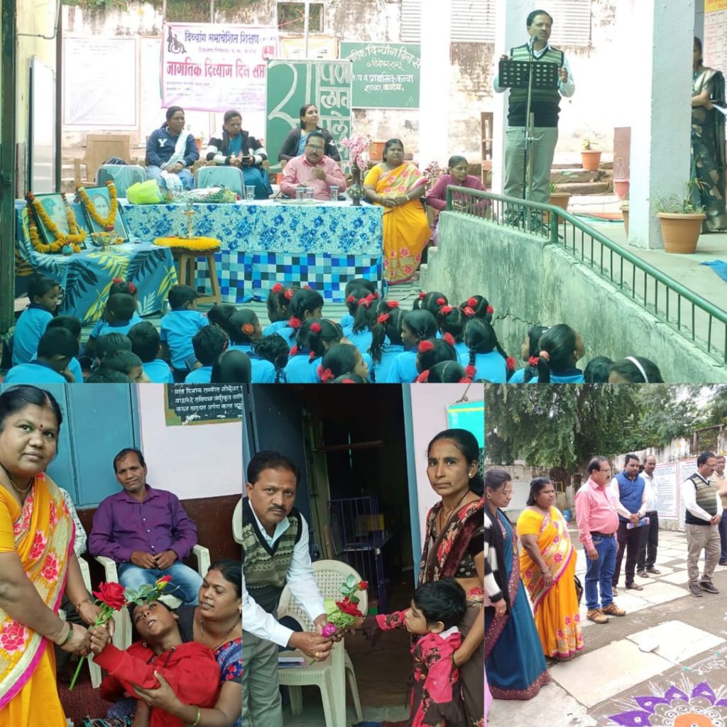 जागतिक दिव्यांग दिन समता सप्ताह निमित्त समावेशित शिक्षण विभाग प. स. कळंब अंतर्गत तालुकास्तरीय जागतिक दिव्यांग समता दिन जि. प. उ.प्रा.कन्या शाळा कळंब येथे आयोजित करण्यात आला होता. या प्रसंगी दिव्यांग विद्यार्थ्यांप्रति जाणीव जागृति व्हावी सामान्य विद्यार्थी व दिव्यांग विद्यार्थी ,पालक शिक्षक आणि समाज यांच्यात संवेदना निर्मिति होउन सर्व दिव्यांग विद्यार्थी मुख्य प्रवाहात आले पाहिजे ह्या उद्देशाची पूर्ति करण्याचे हेतुने गीतगायन,रांगोळी स्पर्धा,चित्रकला स्पर्धा घेण्यात आली.दिव्यांग विद्यार्थ्यांना प्रोत्साहन व प्रेरणा मिळावी या करिता स्पर्धेत सहभागी विद्यार्थ्यांना कार्यक्रमाचे अध्यक्ष मा. श्री. अमोल वरसे (गटशिक्षणाधिकारी प. स. कळंब) श्री. हेडाऊ साहेब(शिक्षण विस्तार अधिकारी) सौ. बोरकर मँडम (जिल्हा समावेशित शिक्षण DIET यवतमाळ) यांच्या हस्ते विद्यार्थ्यांना सुवर्ण पदके व प्रमाणपत्र प्रदान करण्यात आली.*चित्रकला स्पर्धा,रागोळी स्पर्धा चे परीक्षण शगुफ्ता खान (वि.सा.व्य.) कु. शितल आरगुलवार (वि.सा.व्य.) कु. कांचन वानखेडे (वि.सा.व्य.) कु. तेजस्विनी रहाटे (व.ले.लि.) यांनी केले.कार्यक्रमाचे संचालन कु. सारिका हजारे(मुख्याध्यापक) यांनी केले तर प्रास्ताविक सचिन पोटुरकर (समा.विशेष तज्ञ) यांनी केले