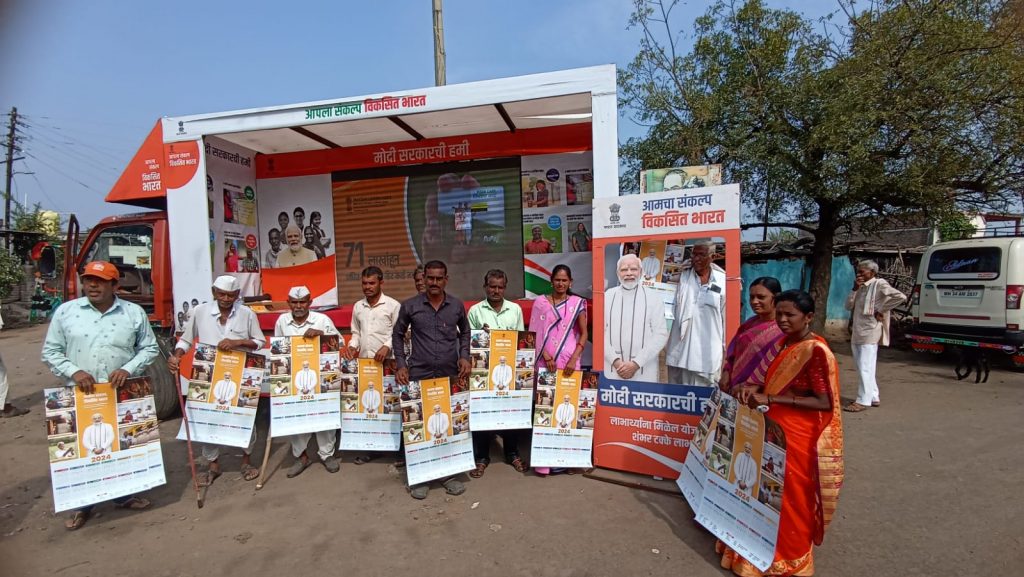 केंद्र सरकारच्या महत्त्वाकांक्षी 17 योजनांची माहिती व योजनेचा लाभ लाभार्थ्यांपर्यंत पोहोचविण्याच्या अनुषंगाने विकसित भारत संकल्प यात्रेच्या रथाचे आगमन राळेगाव तालुक्यातील दहेगाव येथे दि 18 डिसेंबर रोजी झाले व शिवाजी चौका मध्ये रथाचे पुजन करण्यात आले