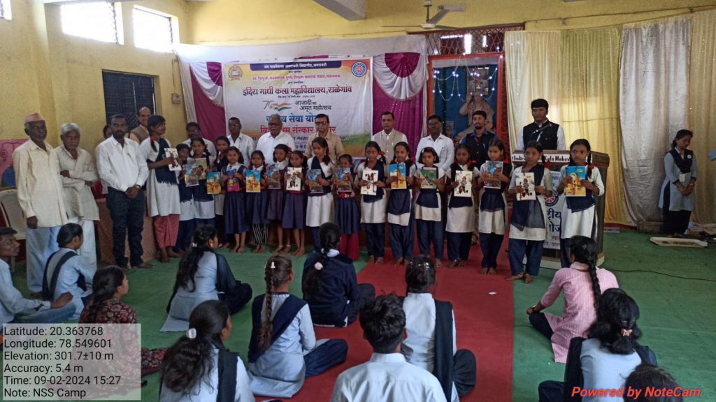 स्व. चिंधूजी लक्ष्मण पुरके शिक्षण प्रसारक मंडळ यवतमाळ द्वारा संचालित इंदिरा गांधी कला महाविद्यालय, राळेगाव येथील राष्ट्रीय सेवा योजना विशेष शिबिराचे आयोजन दिं ०२ फेब्रुवारी २०२४ ते ०९ फेब्रुवारी २०२४ पर्यंत दत्तकग्राम झाडगाव येथे आयोजित करण्यात आले असून या विशेष शिबिराचा दिं ०९ फेब्रुवारी रोजी समारोपीय कार्यक्रम आयोजित करण्यात आला.
