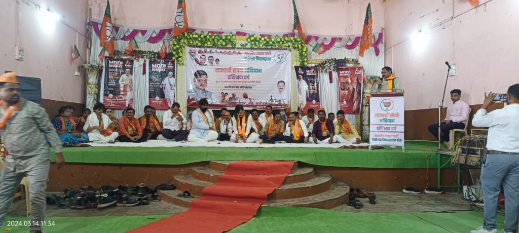 देशाला जगात एक वेगळी ओळख करून देणारे देश विकासाला प्राधान्य देणारे विकास पुरुष प्रधानमंत्री नरेंद्र मोदी हेच देशाचे पुढील नेते व प्रधानमंत्री असेल यात माझ्या मनात थोडी ही शंका नाही आणि महाराष्ट्रात लोकसभेच्या सर्वात जास्त जागांवर युतीचेच उमेदवार निवडून येतील याचाही मला विश्वास आहे यासाठी भारतीय जनता पार्टीच्या प्रमुखांपासून तर लाभार्थी प्रतिनिधी पक्षाचा कार्यकर्ता प्रत्येक सेलचे प्रमुख विधानसभेचे प्रमुख स्थानिक कार्यकर्ता यांनी स्वतःला या रणसंग्रामात झोकून देऊन प्रामाणिकपणे काम करावे लागेल असे प्रतिपादन प्रवीण दरेकर गटनेते भारतीय जनता पार्टी तथा अध्यक्ष मुंबई जिल्हा मध्यवर्ती सहकारी बँक यांनी लाभार्थी संपर्क अभियान प्रशिक्षण वर्गाला मार्गदर्शन करताना केले . राळेगाव येथे केले दिनांक 13 मार्च 2024 ला वसंत जिनिंग येथील स्वर्गीय भाऊसाहेब कोल्हे सभागृहात लाभार्थी संपर्क अभियान प्रशिक्षण वर्गाचे आयोजन राळेगाव विधानसभा भारतीय जनता पार्टीच्या वतीने करण्यात आले होते कार्यक्रमाचे अध्यक्ष भाजपा जिल्हा अध्यक्ष तारेन्द्र बोर्डे होते .राळेगाव प्रमुख मार्गदर्शक प्रवीण दरेकर गटनेते भाजपा विधान परिषद , आ प्रा डॉ अशोक उईके , राजेंद्र डांगे अध्यक्ष प्रदेश भाजपा ओबीसी सेल अमन गावंडे संचालक जिल्हा मध्यवर्ती सहकारी बँक बाळासाहेब शिंदे जिल्हा लाभार्थी प्रमुख अनिल राजूरकर जिल्हा सरचिटणीस चित्तरंजन दादा कोल्हे तालुका अध्यक्ष भारतीय जनता पार्टी राळेगाव सतीश मानलवार विधानसभा प्रमुख, कैलास बोंद्रे तालुका अध्यक्ष कळंब वीरेंद्र तोडकरी तालुका अध्यक्ष पांढरकवडा नितीन परडके तालुकाध्यक्ष बाबु बाभुळगाव संदीप वैद्य अनिकेत पोहकर डॉक्टर कुणाल भोयर शहराध्यक्ष कार्यक्रमाला उपस्थित होते मार्गदर्शन करताना प्रवीण दरेकर यांनी प्रशिक्षणार्थ्याला सांगितले की हा प्रशिक्षण वर्ग नेमका कशासाठी आयोजित केलेला आहे हे आपल्याला प्रामुख्याने समजले पाहिजे येणाऱ्या प्रत्येक निवडणुकीत आपण तयार असलं पाहिजे ते म्हणाले देशाचे यशस्वी प्रधानमंत्री नरेंद्र मोदी यांनी अनेक योजना देशातील सामान्य माणसाकरिता राबविल्या आहे त्याची माहिती घराघरात पोहोचविणे गरजेचे आहे त्याकरिता मोदीजींचा नमस्कार लाभार्थ्यापर्यंत सांगणे नमो अॅप चा उपयोग करणे प्रत्येक विधानसभेमध्ये सर्वच पदाधिकारी बूथ प्रमुख केंद्रप्रमुख सुपर वॉरियर्स यांनी मतदार संघात प्रवास करणे गरजेचे आहे याबाबत माहिती दिली व महाराष्ट्रात युतीचेच उमेदवार निवडून येतील यासाठी आपण सर्वांनी प्रयत्न करावा असे आवाहन केले . कार्यक्रमाचे प्रास्तावीक राळेगांव विधानसभा मतदार संघाचे आ प्रा डॉ अशोक उईके यांनी केल