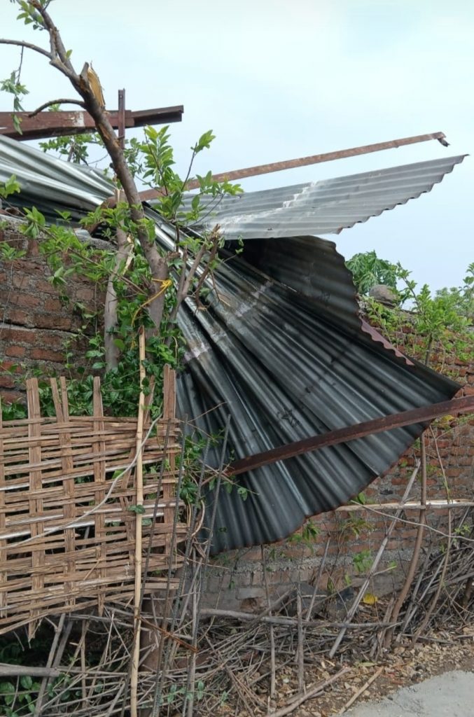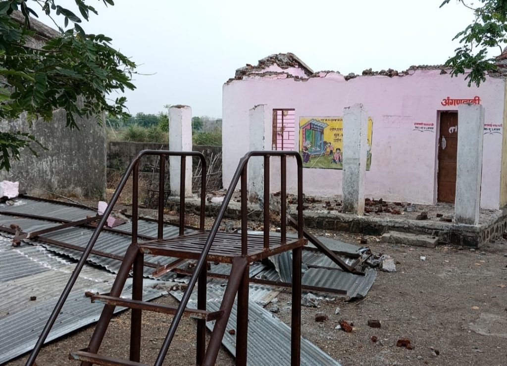 राळेगाव तालुक्यातील धुमक येथील अंगणवाडी चे छप्पर उडून रवींद्र तोडासे यांच्या घरावर पडल्याने येथील रवींद्र तोडासे यांची पत्नी सौ प्रतीक्षा तोडासे व मुलगा दिशांत तोडासे हे गंभीर जखमी झाले असून यांना उमरी येथील ख्रिश्चन हॉस्पिटलमध्ये भरती करण्यात आले आहे. सविस्तर वृत्त असे ३० मार्च रोजी सायंकाळी आठच्या दरम्यान धुमक चाचोरा परिसरातील अकाली वादळी वाऱ्यास पावसाचे आगमन झाले असल्याने धुमक येथील अंगणवाडी चे छप्पर उडून रवींद्र तोडासे यांच्या घरावर पडल्याने तोडासे यांचे मोठे आर्थिक नुकसान झाले आहे. रवींद्र तोडासे तयांची पत्नी प्रतीक्षा रवींद्र तोडासे व मुलगा दिशांत रवींद्र तोडासे हे गंभीर जखमी झाले असल्याने यांना तातडीने उमरी येथील ख्रिश्चन हॉस्पिटलमध्ये भरती करण्यात आले आहे सदर तोडासे यांच्या घराचे मोठ्या प्रमाणात नुकसान होऊन घरातील संपूर्ण जीवन आवश्यक वस्तूचे मोठ्या प्रमाणात नुकसान झाले असून येथील सरपंच सौ शालू शंकर तोडासे, ग्रामपंचायत सदस्य रवींद्र मांदडे, सचिव पंढरी खडसे, महसूल विभागाचे कर्मचारी एम. डी. सानप मंडळ अधिकारी, सौरभ चांदेकर, तलाठी, रवी ठाकरे कोतवाल यांनी घटनास्थळाचा पंचनामा करून पुढे अहवाल सादर केला आहे. सदर तोडासे परिवारांना राहण्याची व्यवस्था नसल्यामुळे त्यांना तात्पुरते दुसरीकडे स्थलांतर केले असल्याचे सांगितले आहे