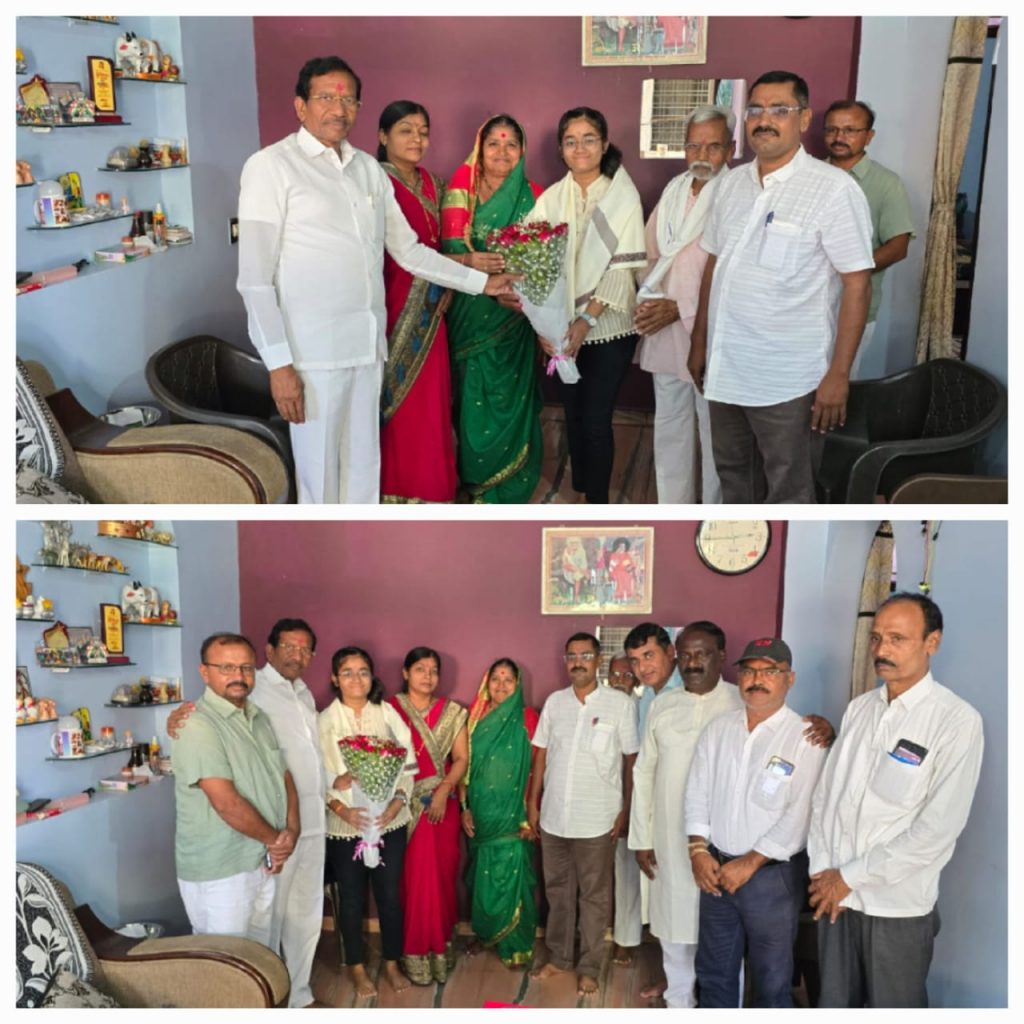महाराष्ट्र राज्य उच्च शिक्षण मंडळ अमरावती विभागात 12 वी.विज्ञान शाखेतून कु.तनिषा सतिश डाखोरे हीने 89% टक्के गुण घेवून राळेगांव तालुक्यातून प्रथम क्रमांक घेवून उत्तीर्ण झाल्याबद्दल माजी शिक्षण मंत्री महा.राज्य प्रा.वसंत पुरके सर यांनी तिच्या निवासस्थानी गणेश नगर राळेगांव येथे जाऊन तिचे व आई वडील यांचे अभिनंदन करून पुढील वाटचालीस शुभेच्छा देवून तिचा सत्कार केला यावेळी अरविंद वाढोणकर, राजेंद्र पोटे,प्रदीप ठुणे,अंकुशभाऊ मुनेश्वर,पुरुषोत्तम चिडे, किशोर धांमदे, प्रकाश पोपट, विजय मानेकर या सर्वानी कु.तनिषा चे अभिनंदन करून पुढील वाटचालीस हार्दीक शुभेच्छा दिल्या.