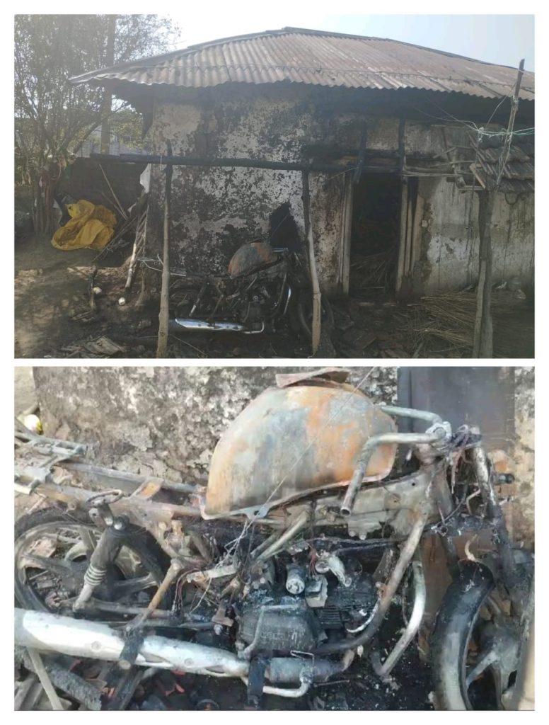 राळेगाव तालुक्यातील आटमुर्डी येथे दिनांक १०/६/२४ रोजी रात्री बारा वाजताच्या दरम्यान आटमुर्डी येथील नानाजी भोकरे यांच्या गोठ्याला दिनांक १०/६/२४ रोजी रात्री बारा वाजताच्या दरम्यान साटसर्कीटमुळे गोठ्याला आग लागली असल्याने गोठ्यात ठेऊन असलेला जनावरांचा चारा कडबा,कुटार, शेतीचे साहीत्य तसेच मोटरसायकल पण जळुन खाक झाली आहे.सदर आगीची बातमी गावात पसरताच गावातील नागरिकांनी शर्थीचे प्रयत्न करुन आग विझविण्यासाठी प्रयत्न केले तर नगर पंचायत राळेगाव व यवतमाळ नगर पालिकेचे अग्निशामक वाहन बोलविण्यात आले . राळेगाव नगर पंचायतचे असं अग्निशामक वाहन व यवतमाळ वरुन अग्निशामक वाहन हे तातडीने घटनास्थळी पोहचुन आगीवर नियंत्रण करीत आग विझविण्यात आली.पण नानाजी भोकरे यांचे मात्र ऐक शेतीच्या मशागतीच्या वेळेस लाखो रुपयाचे नुकसान झाले आहे त्याची महसूल प्रशासन दखल घेऊन तातडीने आगीत जळून झालेले लाखो रुपयाचे नुकसान भरपाई देण्यात यावी अशी परीसरातील नागरिकांची मागणी होत आहे.