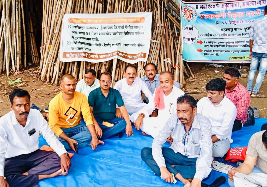 हिंगणघाट शासकीय मेडीकल कॉलेजसाठी उपजिल्हा रूग्णालयाला लागुन असलेल्या ४१ एकर जागा निश्चित करण्यात यावी तसेच वर्धा जिल्यातील सिंदी(रेल्वे) ला तालुका घोषित करणयात यावे तसेच सरकारने हिंगणघाटला जिल्हा घोषित करण्यात यावे या मागणीसाठी पावसाळी अधिवेशन २७ जुन पासुन माजी आमदार प्रा.राजु तिमांडे यांच्या नेतृत्वात माजी नगराध्यक्ष पंढरीनाथ कापसे हिंगणघाट खरेदी-विक्री संघाचे माजी अध्यक्ष उत्तमराव भोयर, प्रहारचे गजानन कुबडे माजी कृषी अधिकारी दिलीपराव वांदिले,राजेंद्र नंदागवळी, अनंता भोयर भाऊसाहेब झिरपे भाऊसाहेब तौर, विजय उईके पुंडलिक भगत पुंडलिक, तिजारे रवींद्र कोटेवाले, राजेंद्र निस्ताने दिलीप उरकुडकर इत्यादींच्या साथीने धरणे आंदोलनाला आझाद मैदान मुंबई येथे बसले आहे.