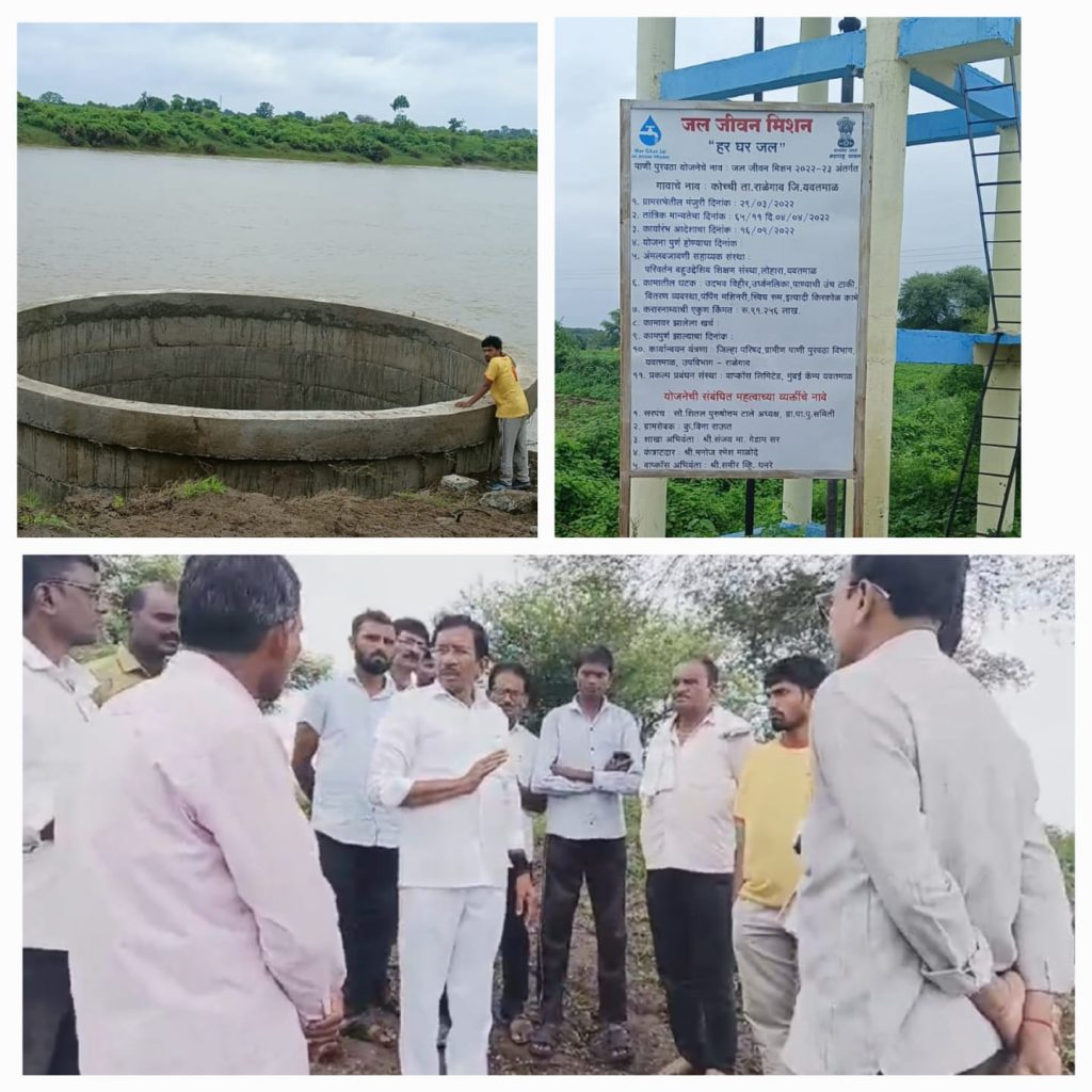 राळेगाव तालुक्यातील कोच्ची येथे पाणीपुरवठ्याच्या विहीरीमधुन गढुळ पाणीपुरवठा होत असलेल्याने कोच्ची येथील ग्रामस्थांच्या तक्रारी निर्माण होत असल्यामुळे प्रत्येक्ष कोच्ची येथे वसंत पुरके माजी शिक्षणमंत्री यांनी जलजिवन मिशन अंतर्गत होत असलेल्या टाकीचे व विहीरीची पाहणी करून संबंधित अधिकाऱ्याशी संपर्क साधुन येथे सर्वप्रथम जलशुद्धीकरण प्लांन्ट सुरू करुन योजनेचे काम हे अत्यंत दर्जेदार झाले पाहिजे असे सांगितले.यावेळी कोच्ची मधुकर जवादे, अंकुश गव्हाणकर, रविंद्र ठाकरे, नंदकिशोर गोफणे, शंकर जवादे, खैरी येथील सामाजिक कार्यकर्ते रविंद्र खैरकर, विनोद माहुरे, व गावातील इतर नागरिक,व महिला मोठ्या संख्येने उपस्थित होत्या.