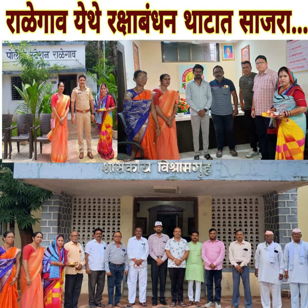 रक्षाबंधन पर्वाचे निमित्त साधुन राळेगाव पोलिस स्टेशन, नगर पंचायत तसेच देशाचे, धर्माचे, समाजाचे विविध स्तरांवर संरक्षण करणारे शुरविरांचे औक्षण करुन राखी बांधण्यात आली. तसेच कर्तव्य दक्ष पोलीस बांधव आणि नगर पंचायतचे नगरध्यक्ष मा.रविंद्रजी शेराम, उपाध्यक्ष जानरावजी गिरी, नगर सेवक बाळुभाऊ धुमाळ, तुलसी जिनिंग चे संचालक संजयजी यांनाही रक्षासुत्र बांधण्यात आले. शासकिय विश्रामगृह येथे माजी शुरविर सैनिकांना रक्षा सुत्र बांधल्या गेले. यावेळी पत्रकार बांधव मोहनजी देशमुख, प्रकाशजी मेहता, डॉ.कैलाशजी वर्मा, मनोहर बोभाटे, राजुभाऊ रोहणर, माजी सैनिक श्रीरामदास धुर्वे , व बाराहाते साहेब, जिवनजी कोवे, इंद्रजीत लभाने,जगन चव्हाण जिल्हा अध्यक्ष माजी सैनिक संघटना,माजी तहसिलदार मधुकरराव गेड़ाम, भाऊराव ठाकरे, श्रीराम मंदिराचे अध्यक्ष अनिलजी वर्मा व सचिव मामा चांदे, रा. स्वं.संघाचे राळेगाव व कळंब तालुक्याचे प्रचारक अक्षय चव्हाण, सुरज गुजरकर, गुरुदेव सेवा मंडळाचे मेश्राम गुरुजी, भगवानजी धनरे सदस्य आणि वरिष्ठांचा गणमान्यांच्या उपस्थितीत रक्षाबंधनचे कार्यक्रम संपन्न झाले.