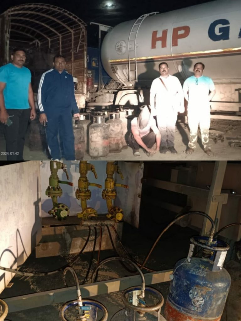 वडकी पोलीस स्टेशनच्या हद्दीतील दहेगाव फाट्याजवळील विरतेजा या धाब्याचे मागे एच.पी.गॅस कंपनीच्या ट्रॅंकर मधून गॅसची चोरी करून सिलेंडर भरत असल्याची गोपनीय माहिती वडकी पोलीस स्टेशनचे ठाणेदार सुखदेव भोरकडे यांना मिळाली त्या माहितीच्या आधारे धाब्यावर पोलीसांनी अचानक छापा टाकला असता त्या ठिकाणी काही जण एम.एच.४० बी.जी.५९७४ क्रमांकाच्या गॅस टँकर मधून टँकर कॅप्सुलचे वाॅल पैकी मधल्या वाॅल मधून पाच नोझल असलेल्या एका लोखंडी पाईपच्या सहायाने रिकामे व्यवसायिक सिलेंडर भरताना आढळून आले.तसेच भरलेले सिलेंडर बाजूला उभी असलेल्या एम.एच.१२ जि.टी.१५८४ या क्रमांकाच्या वाहनामध्ये टाकतांना दिसुन आले.या प्रकरणी पोलिसांनी धाबा चालक श्रवण कुमार राजूराम (२८) ग्राम पल्ली जि.जोधपूर राजस्थान व शिवबहादुर सिंग रामलखन सिंग (४९) ग्राम नकटी पवैया जि.सतना मध्यप्रदेश यांच्या विरोधात विविध कलमान्वये गुन्हा नोंद केला असून त्यांचे कडून एक टँकर, एक टाटा मोटर्स कंपनीचे ४०७, निळ्या रंगाची ३९ व्यवसायिक सिलेंडर,२५ खाली सिलेंडर, लोखंडी नोझल असलेलले प्लॅस्टिक पाईप,वजन काटे व एक लोखंडी पाना असा जवळपास ३१ लाखांचा मुद्देमाल जप्त केला आहे.हि कारवाई जिल्हा पोलिस अधीक्षक कुमार चिंता अप्पर पोलीस अधीक्षक पियुष जगताप उपविभागीय पोलिस अधिकारी रामेश्वर वैंजने यांच्या मार्गदर्शनात वडकी पोलीस स्टेशनचे ठाणेदार सुखदेव भोरकडे,आकाश कुदूसे, विनोद नागरगोजे सचिन नेवारे अविनाश चव्हाण यांनी पार पाडली.