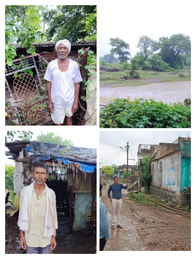 राळेगाव तालुक्यात काल दि ३१ ऑगस्ट रोजी मुसळधार पाऊस झाला.राळेगावत मंडळात ७३ मिलिमीटर पावसाची नोंद झाली आहे. शनिवारी सायंकाळी झालेल्या मुसळधार पावसाने तालुक्यातील सावंगी पेरका, वाटखेड या गावातील अनेकांच्या घरात पाणी शिरले आहे. मुसळधार पावसामुळे वाटखेड गावालगत असलेल्या नाल्याला प्रचंड प्रमाणात पूर येऊन अनेकांच्या घरात मोठ्या प्रमाणात पाणी शिरले आहे.त्यामुळे घरातील संसार उपयोगी साहित्य पूर्णपणे भिजलं आहे. तर अन्नधान्य सुद्धा या पाण्यात भिजल्याने नागरिकांचे नुकसान झाले आहे. परिसरागत शेती पिकाचे सुद्धा मोठ्या प्रमाणात नुकसान झाले आहे, काही शेतीला तलावाचे स्वरूप प्राप्त झाले आहे.पुराचे पाणी शेतात शिरले आहे.शेकडो एकर शेती या पाण्यामुळे खरडून गेली आहे. सोयाबीन,तूर कापूस पिकांना याचा फटका बसला आहे.पिकांच्या मुळ्या उघड्या पडल्याने आता ही सर्व पिके नष्ट होणार आहे, त्यामुळे शेतकऱ्यांचे मोठे आर्थिक नुकसान होणार आहे. तहसीलदार अमित भोईटे, कृषी अधिकारी जोशी मंडळ अधिकारी महादेव सानप यांनी तालुक्यातील वाटखेड,सावंगी पेरका या गावाला भेट देऊन पूर परिस्थितीची पाहणी केली असून तहसीलदार भोईटे यांनी संबंधित तलाठ्यांना नुकसानग्रस्त भागाचे पंचनामे करण्याचे आदेश दिले आहे.