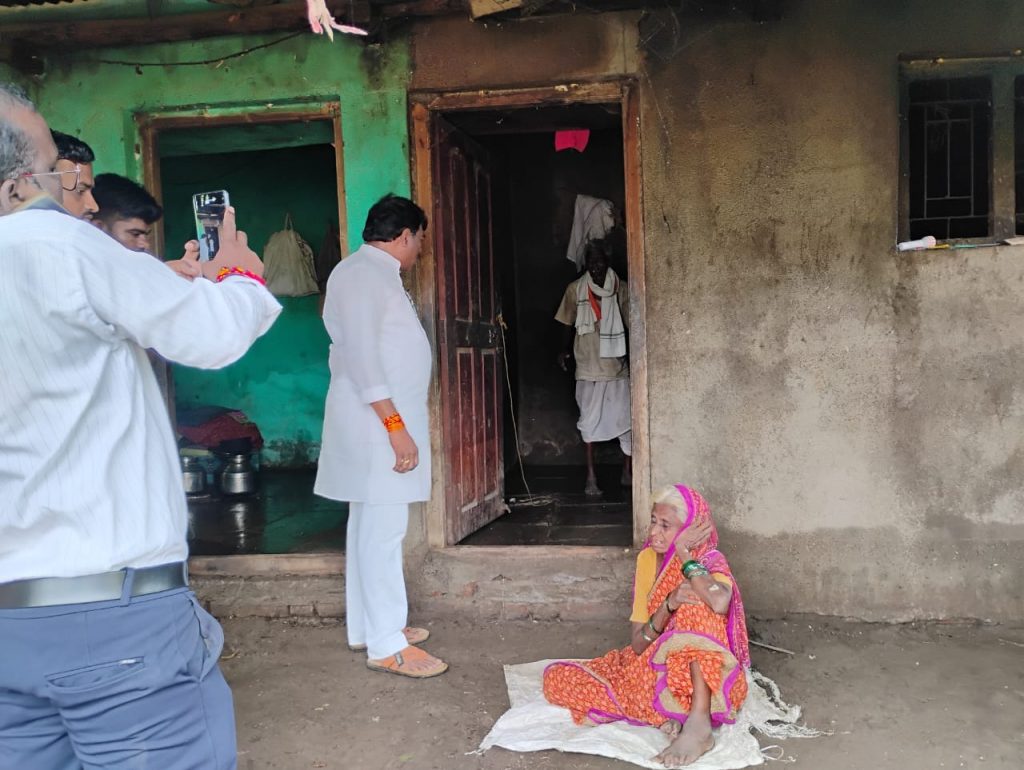 कोरटा येथिल नाल्याकाठावर राहणारे ७५ वर्षीय आजी – आजोबा चिंतामण व गुनाबाई यांनी आमदार नामदेव ससाने यांना पाहताच टाहो फोडला . घरात असलेली सात आठ क्विंटल ज्वारी व इतर धान्य वाहून गेले . कसाबसा जीव वाचला साहेब रात्रभरापासून उपाशी आहो म्हणताच आमदारांनी तात्काळ निराधार आजी- आजोबांना किराणा सामानाची अन्न धान्याची व आरोग्य तपासणी करण्यासाठी आर्थिक मदत यावेळी करून त्या कुटुंबियाला दिलासा दिला आहे .